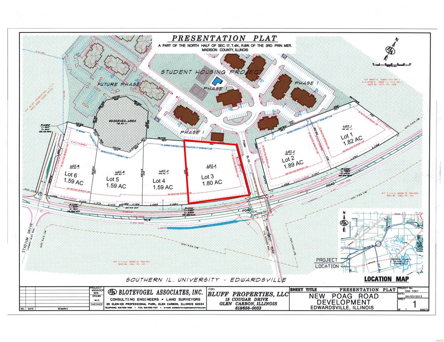 Breathtaking views of the American Bottoms, St. Louis & beyond. Perfect for retail or upscale office. Access to a 4-way lighted intersection. Presentation plat is flexible. Property must be platted prior to closing. Lot number 3 on presentation plat. Adjacent to Enclave West student housing development. Broker owned.