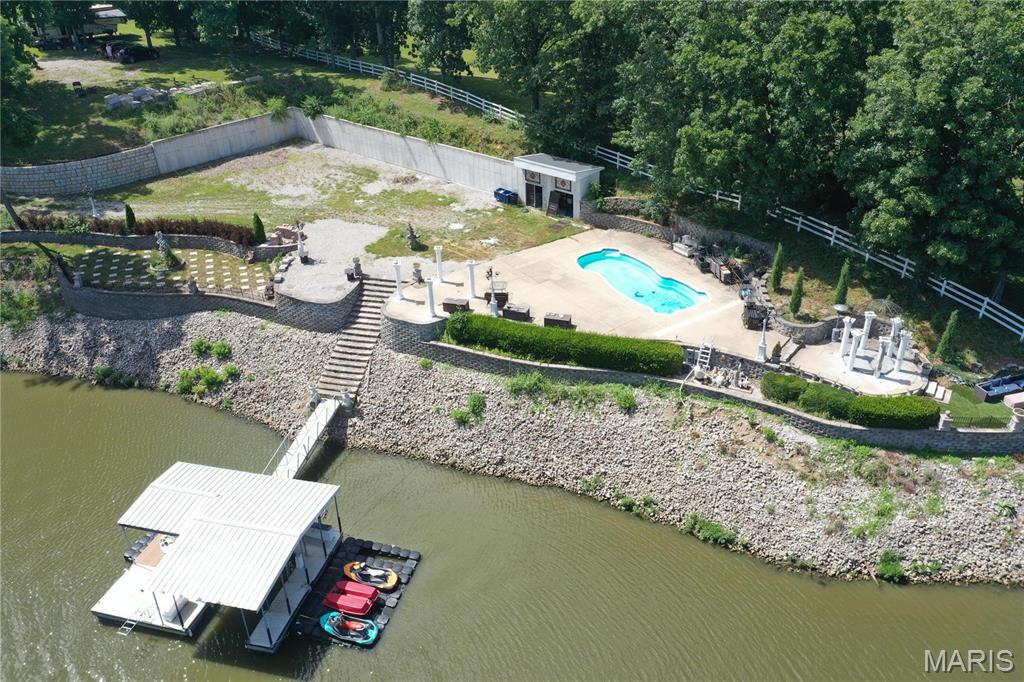 Looking to build your own personal lake resort or divide the property for multiple home sites? Look no further than this one of a kind nearly 8 acre, waterfront property, just 1hr from St. Louis. Everything is ready to begin your dream lakefront home on this 1,200 acre lake. Enter your own security gate to your private oasis drive, lined with beautiful oak trees & vista views of Lake Glen Shoals. The property has 2 stocked ponds w/ colorful, large Japanese Koi, a one-of-a-kind gazebo shipped from Italy, & your very own lakeside sand volleyball court, complete w/ a drainage system. The road, water, electric, fiber optic cable, & septic system have already been installed. The lakefront has already been lined w/ keystone & rip rap & the cove has been dredged. Plus, enjoy the large inground swimming pool, hot tub w/ another Italian gazebo & firepit. This exquisite property also includes a boat dock w/ lift & 4 wave runner ramps. Priced for a quick sale w/ over $1.2 million invested