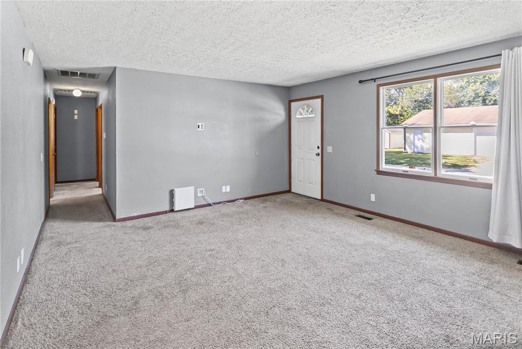 Here is a spacious 4 bedroom, 2 full bath home, at the end of a no outlet street. The front entry living room leads into the kitchen with center island, and open dining space leading to a separate laundry room. The divided center hall floor plan offers privacy as the Primary bedroom is at the North end with a full bath, linen storage, walk-in closet with laundry hook-ups and tall ceilings. The family room is perfect for hanging out and could be divided if needed. Down the hallway is a full bath and three additional bedrooms. The family room, full bathroom and primary bedroom have been painted with primer and ready for your paint colors! Features new patio in 2020, Laminate floors 2020, HVAC and roof 2016. Easy to view and OPEN TO ALL LOAN TYPES!