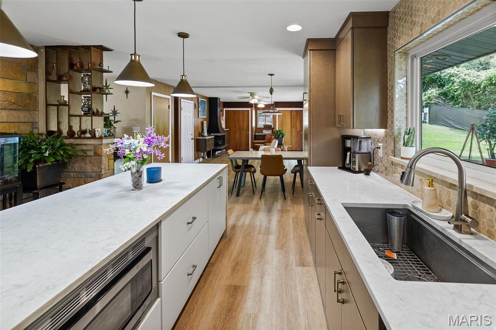 Step into timeless style at 1001 Ostle Dr. in Collinsville! This 3-bedroom, 2-bath Mid-Century Modern gem blends vintage charm with tasteful updates. The beautiful kitchen features solid surface countertops, a center island perfect for casual dining, and clean, modern lines that nod to its architectural roots. Downstairs, you’ll find a spacious finished basement with retro vibes throughout—ideal for entertaining or relaxing. Outside, enjoy a fully fenced yard with an inviting inground pool, perfect for a fun summer workout, relaxation and private backyard gatherings. A rare find full of character, comfort, and mid-century flair! Schedule your private showing with your favorite realtor.
