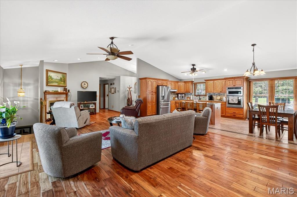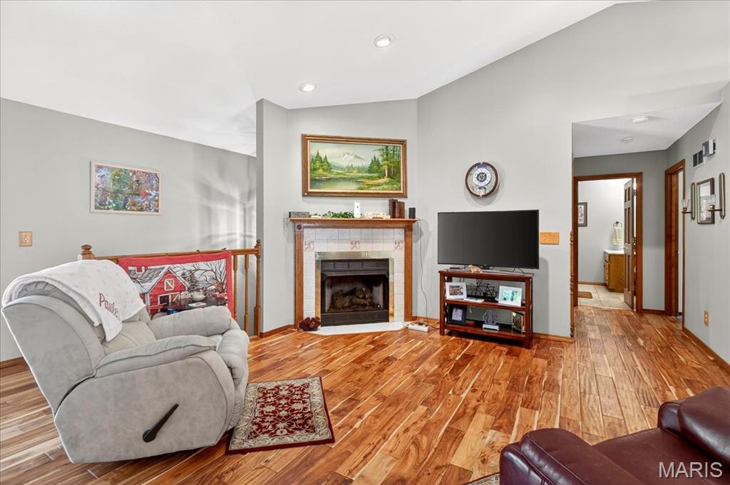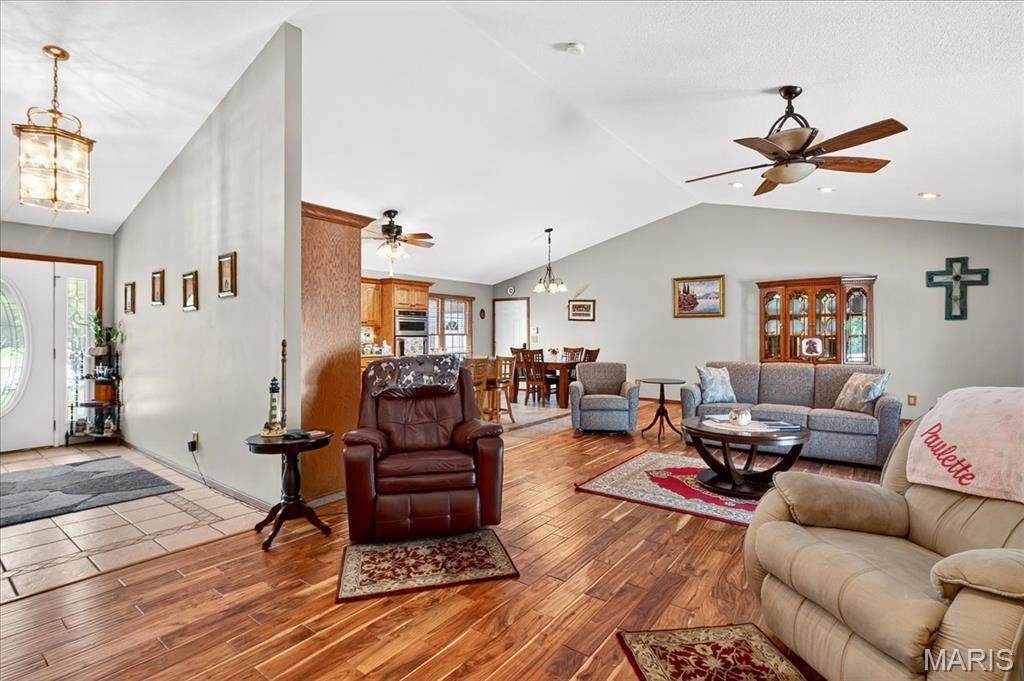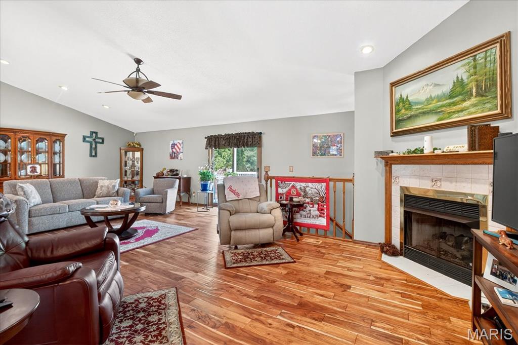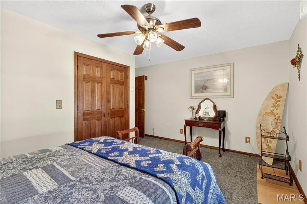 Ofallon School District, Solar, 1 acre; This fabulous home offers 4 bedrooms (all generously sized with lighted closets) & 4 baths. The open floor main level has cozy gas fireplace and sliding doors leading to an expansive, composite deck and pool area. The updated kitchen includes custom cabinetry, Quartz Counters, Island seating & Stainless appliances. The master bedroom suite, 2nd bedroom and a bath complete the main level. The lower level has a large family room with entertainment center and sliding doors to a walk-out patio. 2 Add’ll bedrooms plus a bonus room (currently used as non-compliant 5th bedroom), a full bath & laundry complete the lower level. Lower level has low maintenance LVP floor throughout. There’s a 623 sq ft bonus space on the main level off the garage with private entrance, separate heat/cooling, kitchen & 1/2 bath for endless possibilities; home business, additional living quarters, gym, Entertainment space etc. The garages are the multi-car family & car enthusiasts’ dream w/ parking for 6 cars /boat/camper etc. A 12 x 19 Shed in the back yard provides additional storage. The yard with mature shade trees is nicely landscaped, just a beautiful property. Solar panels will be paid for in full by seller, the electric bill runs about $21/month, propane tank to fill as needed. Generator for peace of mind. Roof June 2025, siding & shutters July 2025, HVAC 2015. Above ground pool is saltwater and comes with equipment. About 15 minutes to SAFB and Hospitals.