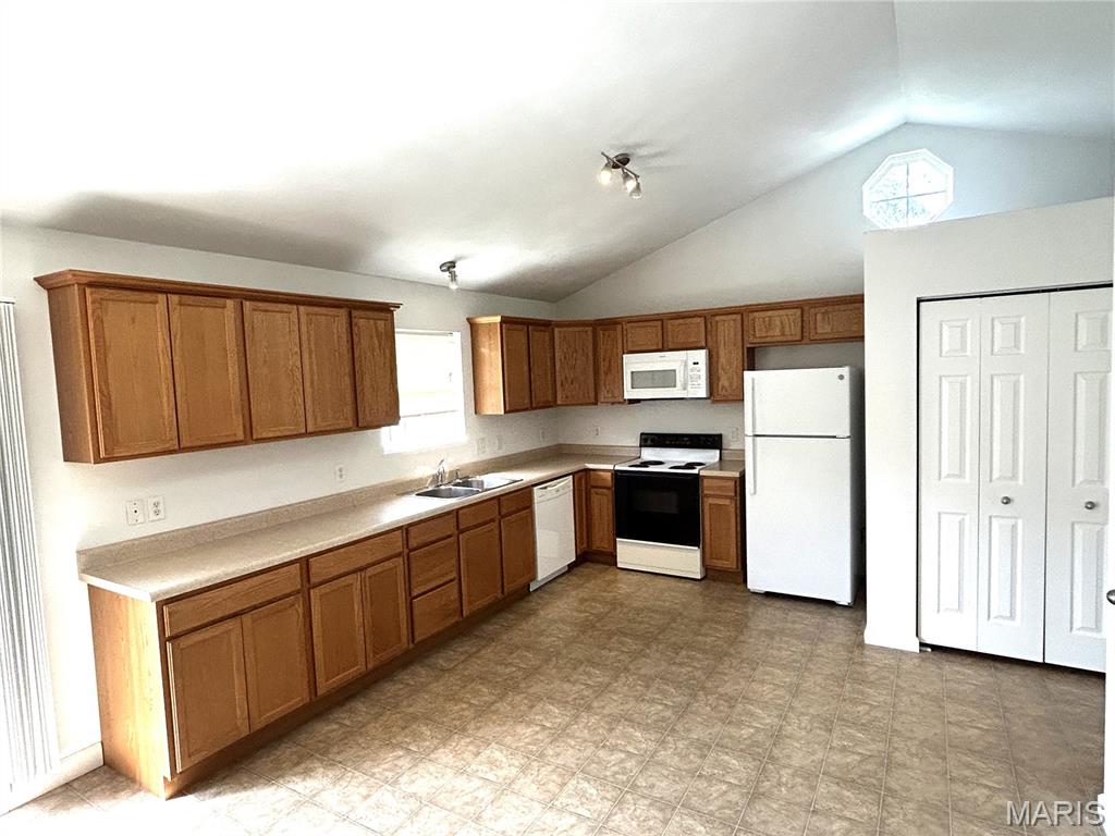 Well maintained 3 bedroom 2 bath ranch with a 2 car attached garage. Vaunted ceilings in the living room, primary bedroom and second bedroom. Open kitchen with abundance of cabinets. All kitchen appliances stay. Gas log fireplace with mantle. Primary bedroom with double closet and en suite bathroom. All carpeting just replaced for the sale. Covered front porch. 12×11 concrete patio. Storage shed. Built in 2010. The home has passed occupancy inspection.