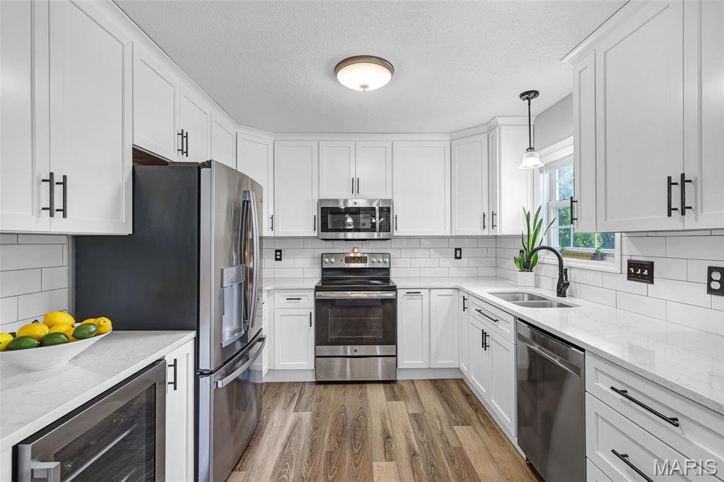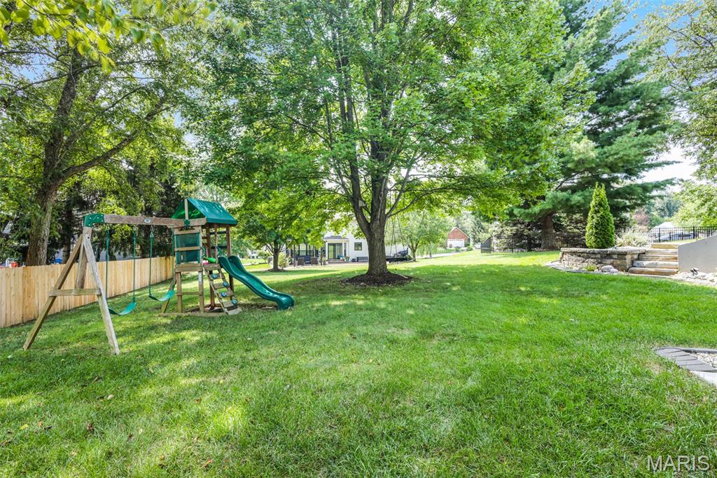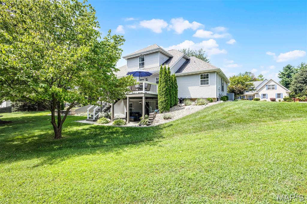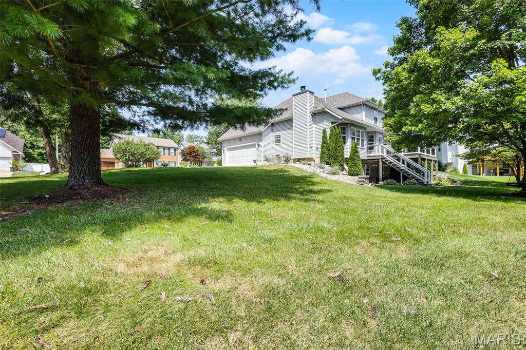 Welcome to this stately 1.5-story masterpiece offering an abundance of living space in a desirable subdivision, just a short stroll to Schon Park & scenic MCT trails. This home has been designed for both entertaining & everyday comfort. Step inside to a sun-drenched living room, anchored by a charming bay window & gas fireplace flanked by custom built-ins, seamlessly open to the bright, updated kitchen. Quartz counters, subway tile backsplash, generous cabinetry, an island for casual dining & separate beverage fridge create a space as functional as it is beautiful. Host holidays in the formal dining room, enjoy the convenience of main floor laundry & retreat at day’s end to the main floor primary suite; a serene haven w/ coffered ceiling & ensuite w/ double vanity, whirlpool tub, water closet with tub/shower & walk-in closet. Upstairs, are 3 generous bedrooms w/ spacious closets & full bath. The walkout lower level offers the ultimate in versatility; an expansive family room, rec area, wet bar, ¾ bath & 5th bedroom w/ walk-in closet, ideal for guests, a home office, or a private retreat. Step out to the deck overlooking the oversized lot w/ mature trees, stone steps & meticulous landscaping; a private sanctuary for morning coffee or evening sunsets. The 2-car attached garage and abundant storage make daily living effortless. From morning strolls to the park, to cozy nights by the fire, to lively gatherings in your expansive living spaces–this home has something for everyone