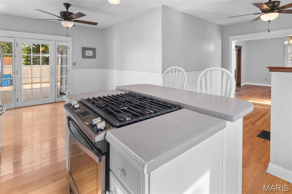 The kitchen features a convenient center island with additional seating and an adjacent eat-in area, making it ideal for both casual meals and entertaining. A spacious formal dining room provides ample space for gatherings and special occasions.