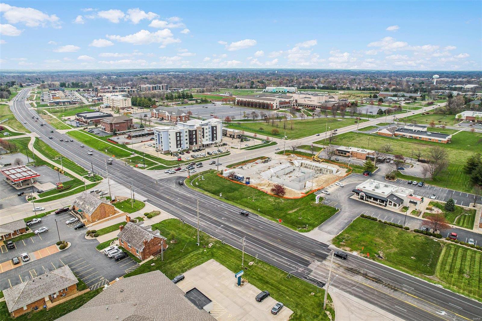 NEW PRICE! SAME GREAT PROPERTY & LOCATION! 1.03 Acre Commercial Site w/restaurant located at busy intersection on State Rt 157 in the heart of Edwardsville’s newest redevelopment area! 195′ of frontage on 5-lane highway, near 4-way lighted intersection w/Average Daily traffic count 20,000. This site is one lot off the corner of Center Grove Rd intersection; next to the newly built Sav-On Liquor store! Former building housed Imo’s restaurant on one side w/ice cream store & patio on other. Building offers: 4224 SF restaurant w/ kitchen, large dining area, 2 lavatories, drive-up window and patio. 1.03 acre site currently has 44 parking spaces. New rolled rubber roof in 2016, restaurant dining area remodeled in 2020. Location: High Traffic, Hwy/Interstate Frntg GREAT POTENTIAL! Seller is firm on price.