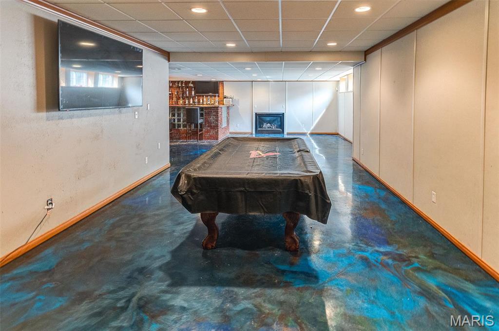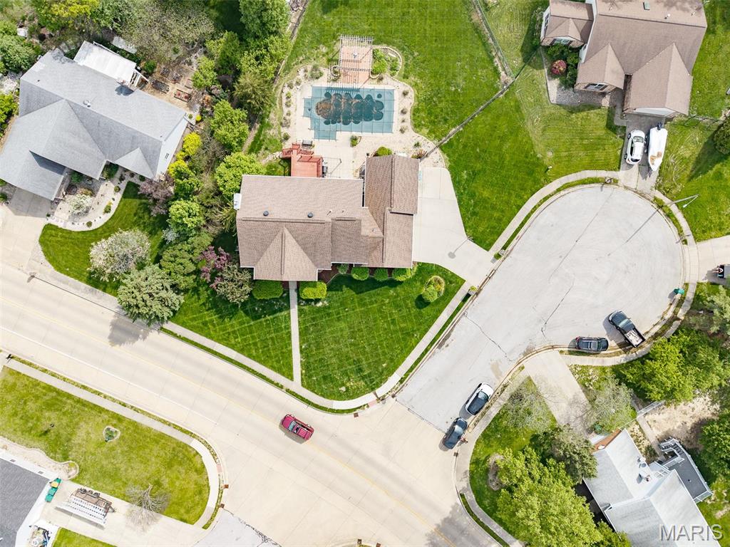 Inside, a grand 2-story foyer opens to formal living and dining room. The sun-filled great room impresses with a wall of windows and a cozy gas fireplace. The spacious kitchen offers a large island, eat-in area, and ample cabinetry—ideal for everyday living and entertaining. A private office, powder room, and laundry complete the main level. Upstairs includes a luxurious primary suite, three additional bedrooms, and a full bath. The finished lower level boasts Owens Corning soundproof wall systems, custom built bar, a family room, billiard and rec rooms, second fireplace, sleep room, full bath, and walk-up access to the pool. Don’t miss this home as it sits on over and half acre lot.