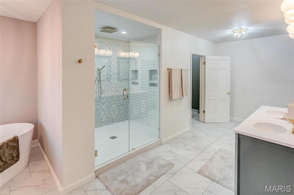 Gorgeous, stately home fully remodeled in prestigious Country Club Place. Featuring an open floor plan, vaulted ceilings, and ample living space! Tons of light fill the two living rooms! Three bedrooms, with a main floor primary suite of your dreams: beautiful bathroom with a soaking tub, large separate shower, separate toilet room, walk-in closet, laundry, new custom doors leading to a private patio perfect for a hot tub. It also boasts french doors leading to the second bedroom which can also be used as an office. The second full bath on the main has also undergone a tremendous remodel. The partial basement is the perfect lounge space and features a bathroom, tons of storage, laundry area. Fully fenced yard. Updates galore: new appliances, new plumbing, new insulated duct work and HVAC, new gas fireplace inserts with remotes, all new bathrooms, insulated garage door, new electrical panel and additional panel for future expansion, new sump pump, new sewer lines and more!