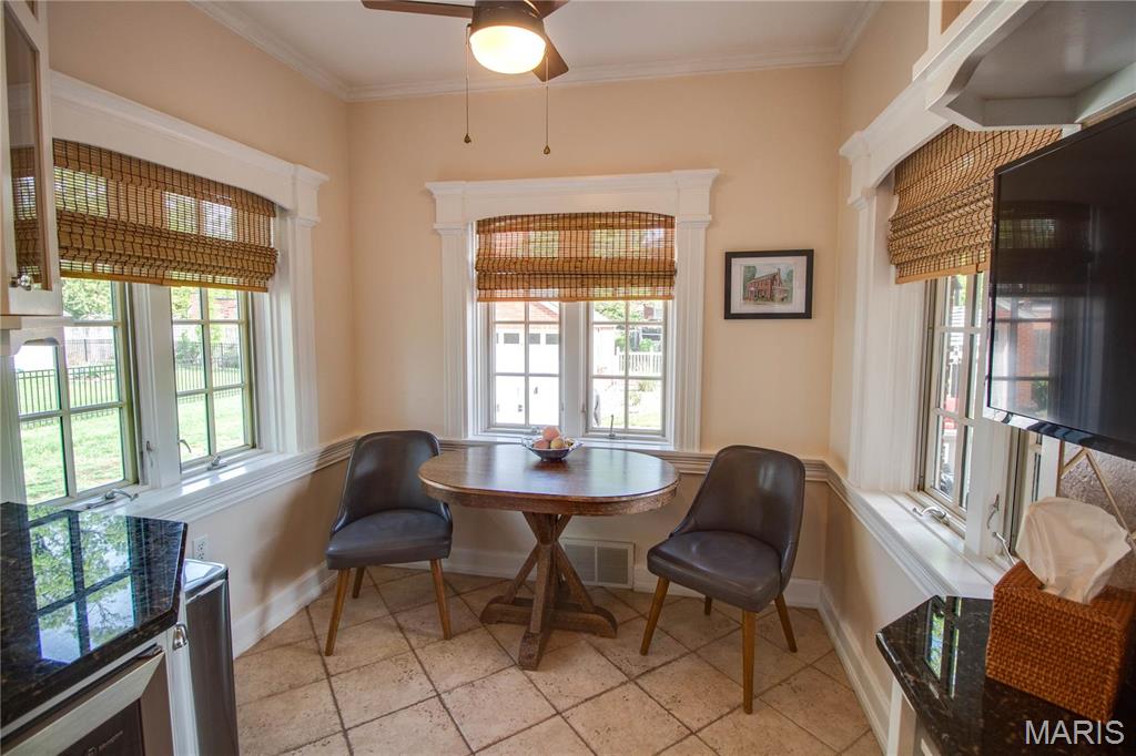 CHARMING GODFREY HOME IN IMMACULATE CONDITION! This all brick home has 3 good sized bedrooms with hardwood floors. 3 bathrooms 2 full and 1 half bath. Foyer entry opens to living room with gas fireplace, dining room with beautiful lighted corner cabinet, crown molding and mill work. Kitchen at the rear of home has eat in area, granite counter tops, NEW stainless appliances and gas cooktop, 2 full sized wall ovens, new garbage disposal, wine refrigerator and an abundance of cabinets, some of which are lighted. Cozy sunroom off of living room has lots of windows. Partially finished lower level is a walk-out with plenty of storage. Zoned heating and cooling. Beautifully landscaped yard is easy to maintain and has a fenced in back yard. Concrete driveway leads to a 18 x 20 Detached 2 car garage with a concrete floor and power. Whole house generator stays and was recently serviced. Heating and cooling also serviced. A MUST SEE!!! Additional Rooms: Mud Room, Sun Room. HOMEOWNERS HAVE RECENTLY DONE A WHOLE HOUSE INSPECTION AND A TERMITE INSPECTION TO RULE OUT ANY SURPRISES FOR BUYERS.