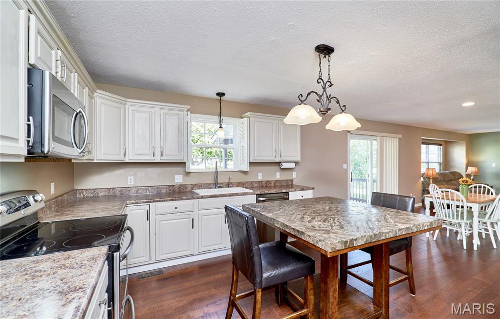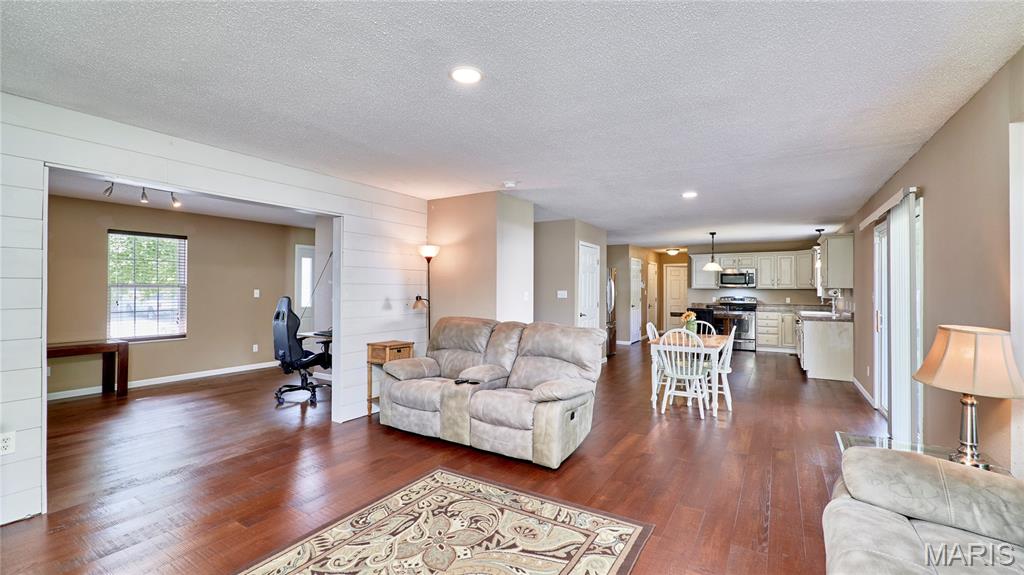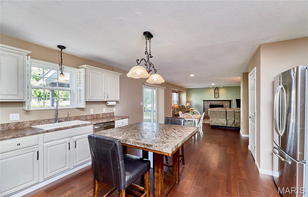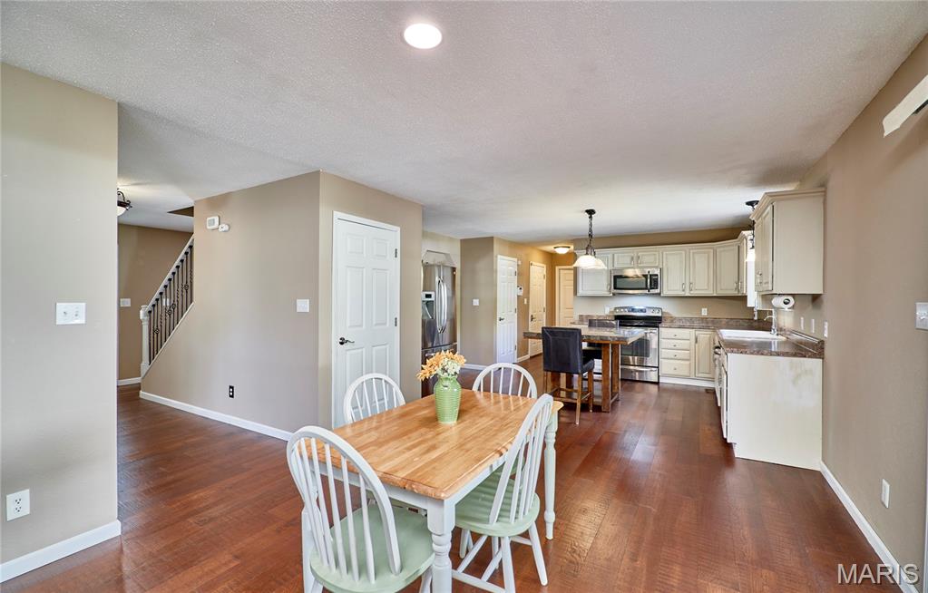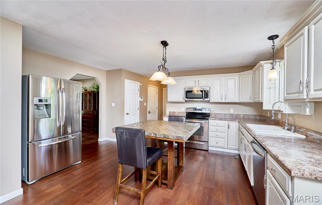 Welcome to 1221 Seward Drive in O’Fallon, IL! This spacious 5-bedroom, 3.5-bathroom home offers an inviting open floor plan perfect for modern living. The kitchen is the heart of the home, featuring stainless steel appliances, a center island, and seamless flow into the dining and living areas. Luxury vinyl plank flooring adds style and durability throughout the main living spaces. Upstairs, generously sized bedrooms provide comfort for the whole family, while the finished lower level offers additional space for entertaining or relaxation. Step outside to a beautifully fenced backyard complete with peach and apple trees—perfect for enjoying peaceful evenings or hosting gatherings. This home combines comfort, convenience, and charm in a fantastic O’Fallon location!