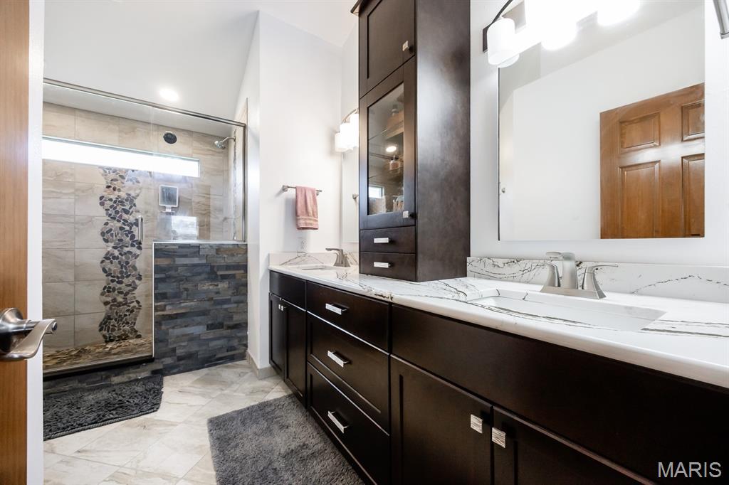 Sold before listed. 2 story, 4 bed, 4 bath, and full finished basement. The moment you step into the 2 story entry, you’ll love the updates and timeless style throughout. The heart of the home is the main living area w/bay windows, anchored by a ventless gas fireplace surrounded by stone and shiplap accents that flows into the kitchen. The kitchen is a true culinary delight with white shiplap cabinetry, soft-close doors, Spanish granite countertops, butterfly island, extra bar and seating area, and SS appliances. The DR offers a tray ceiling and modern lighting for formal gatherings. The LR boasts an entire wall of new custom built-in shelving, offering charm and functionality. Upstairs, the primary suite showcases a cozy stone fireplace, built-in cabinetry, and an upgraded walk-in closet. The spa-like primary bath features a custom double shower with river rock, an upgraded double vanity, and smart Mirrors. 3 additional bedrooms and a beautifully refreshed secondary bathroom finishes the 2nd level. The finished basement offers more living space, a full bathroom, and plenty of unfinished storage. Energy-saving upgrades include a 28 SEER HVAC (2022), tankless water heater (2023), blown-in attic insulation (2024), and energy-efficient windows (2020), updated bathroom vanities, all new toilets. A heated 3 car garage with extra shelving ensures more storage, while the backyard offers plenty of entertainment space. This home truly blends style and efficiency in every detail!