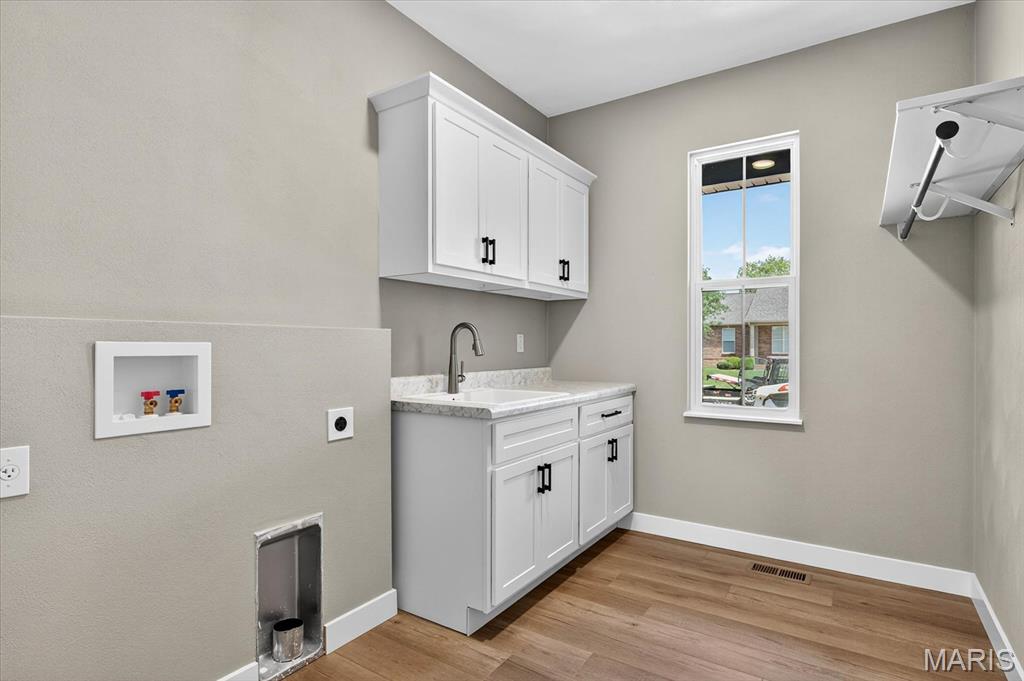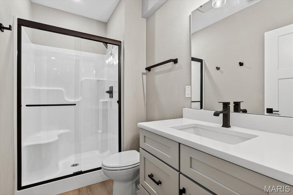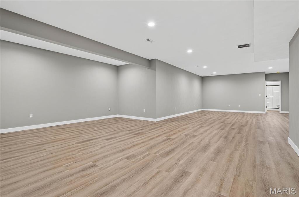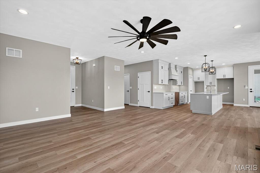 Stunning new construction ranch featuring 4 bedrooms, 3 bathrooms, and a 3-car oversized garage. The crisp white exterior with black accents delivers timeless curb appeal. Step inside this thoughtfully crafted home, to a spacious foyer that opens into a bright and airy living space with luxury vinyl plank flooring throughout and high-end finishes at every turn. The heart of the home is the open kitchen, dining, and living area—bathed in natural light. The show-stopping kitchen boasts floor-to-ceiling custom cabinetry, quartz countertops, a massive island, luxurious hood vent, and a custom walk-in pantry with built-ins. A covered back patio with ceiling fan offers a perfect space to relax or entertain. Off of the massive garage, a mudroom leads to a laundry room with cabinetry, sink, and hanging storage. The primary bedroom features a walk-in closet with custom built-ins, ensuite bath with double sink, tile glass shower. Additionally you have two other bedrooms and a full bathroom. The finished lower level adds 900 sq ft of finished living with 9′ ceilings, a fourth bedroom, full bath, and storage area. Every inch of this home exudes thoughtful design and quality craftsmanship, don’t miss the opportunity to call this home!
