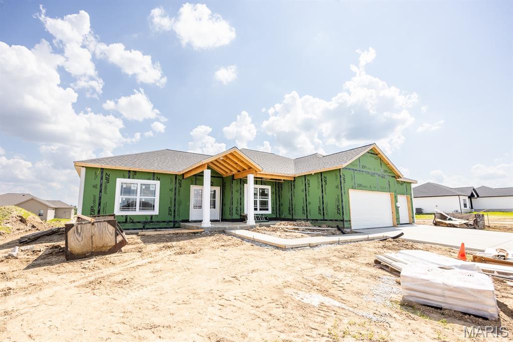 WHY WAIT TO BUILD WHEN YOU CAN GET INTO THIS NEW HOME IN THE POPULAR RESERVES OF TIMBER RIDGE SUBDIVISION BY SUMMER? Introducing the KAYLEE floor plan-a custom built ranch designed for modern living! This thoughtfully crafted home offers a functional split-bedroom layout w/ spacious open-concept living. The heart of the home features a vaulted great room w/ fireplace that flows into the gourmet kitchen -complete w/ large island, custom cabinetry & walk-in pantry. Step out onto the covered patio for outdoor entertaining. The primary suite is a retreat of its own, offering a deluxe en-suite bath w/ dual sinks, a tile shower, & a generous walk-in closet. Two additional bedrooms& a full bath upstairs. The partially finished basement offers a 4th bedroom, 3rd full bath, spacious family room & still plenty of space for storage or to add additional square footage. Other highlights include 3-car garage, energy-efficient systems & quality finishes throughout. Estimated completion date of Aug. 30. Convenient location to Scott AFB, parks, schools, restaurants & interstate access. See attached floor plan & list of selections. Interior Photos of similar build. MUST SEE!