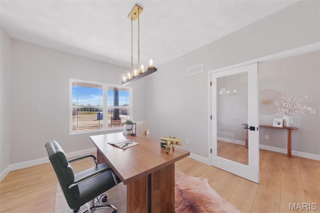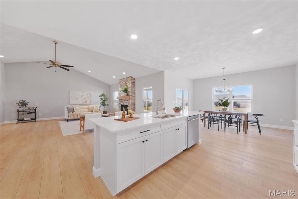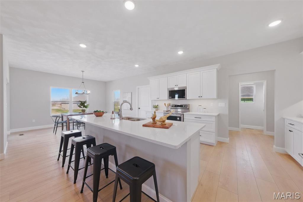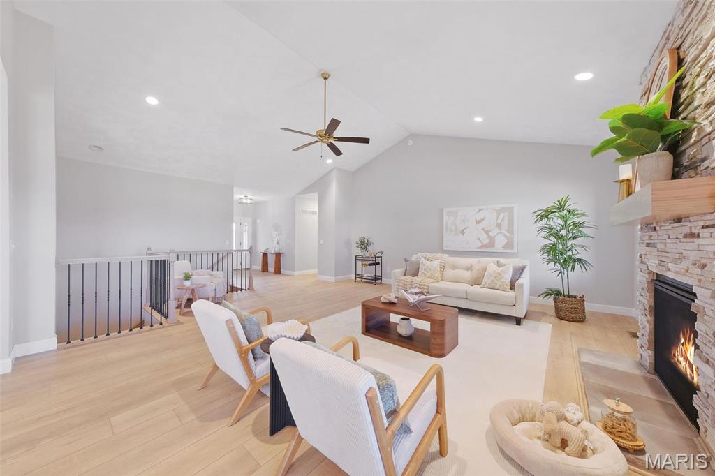 Experience luxury and convenience at 1379 Walnut Ridge in Columbia, IL. This exquisite 2,500+ square-foot 1 story home showcases three sides of brick and spacious three-car side entry garage. Inside, the living room boasts a vaulted ceiling and gas fireplace framed by a floor-to-ceiling stone hearth. A flexible dining room or home office offers lots of opportunity. Chef-ready kitchen with stainless steel appliances, quartz countertops, a center island, and a generous walk-in pantry. Main-floor primary suite is a sanctuary, featuring nine-foot ceilings, recessed lighting, a walk-in closet, and a spa-like bath with a double-bowl vanity, separate shower, and corner soaking tub. You’ll also appreciate the convenience of main-floor laundry. Step outside to a covered composite deck—complete with ceiling fan and recessed lighting—perfect for savoring sunset views. A walk-out basement with nine-foot ceilings and egress windows offers the option to create a fourth and fifth bedroom or additional living space before closing. Located just 5 minutes from Historic Main Street with restaurants, shopping, and community events. Easy highway access to St. Louis, this move-in-ready home provides an easy commute to Scott Air Force Base and STL International airport. Don’t miss your opportunity to own this gorgeous home with luxury finishes & unbeatable location—schedule your private tour today or stop by the OPEN HOUSE either (or both) Sunday, August 24 2:00 PM – 4:00 PM.