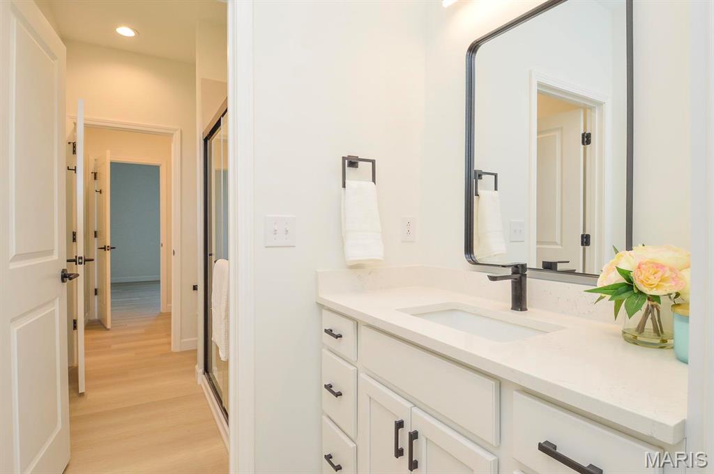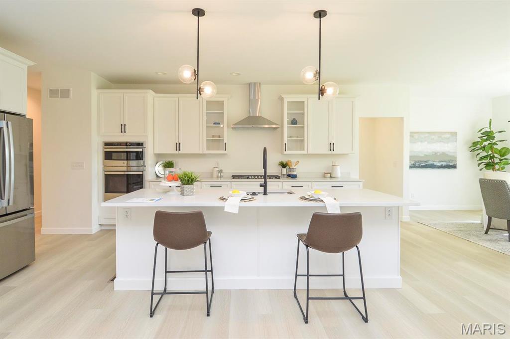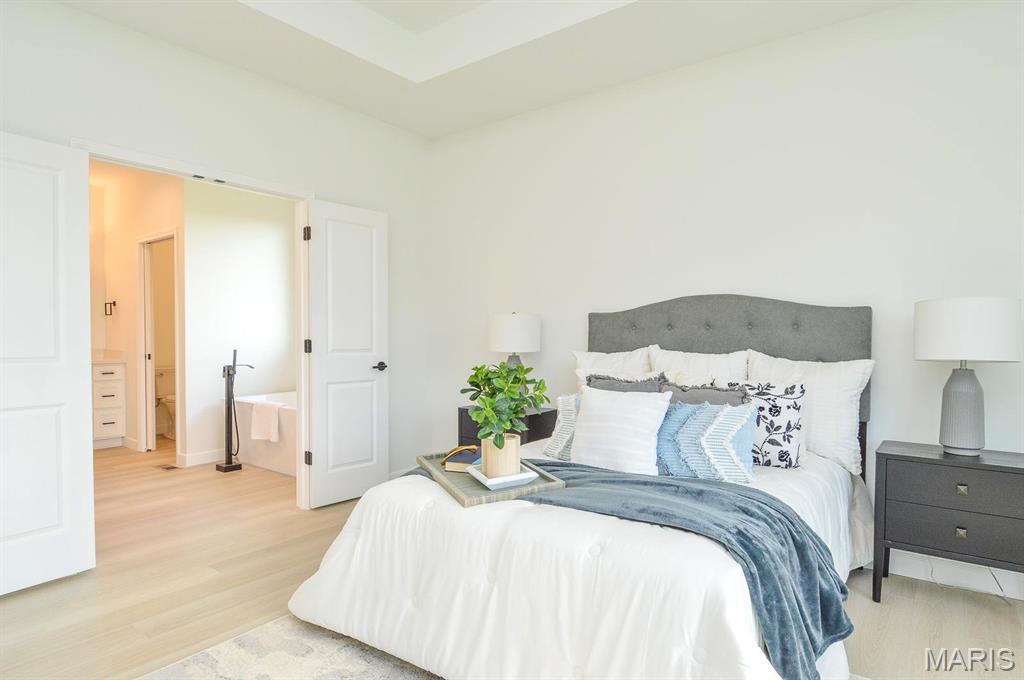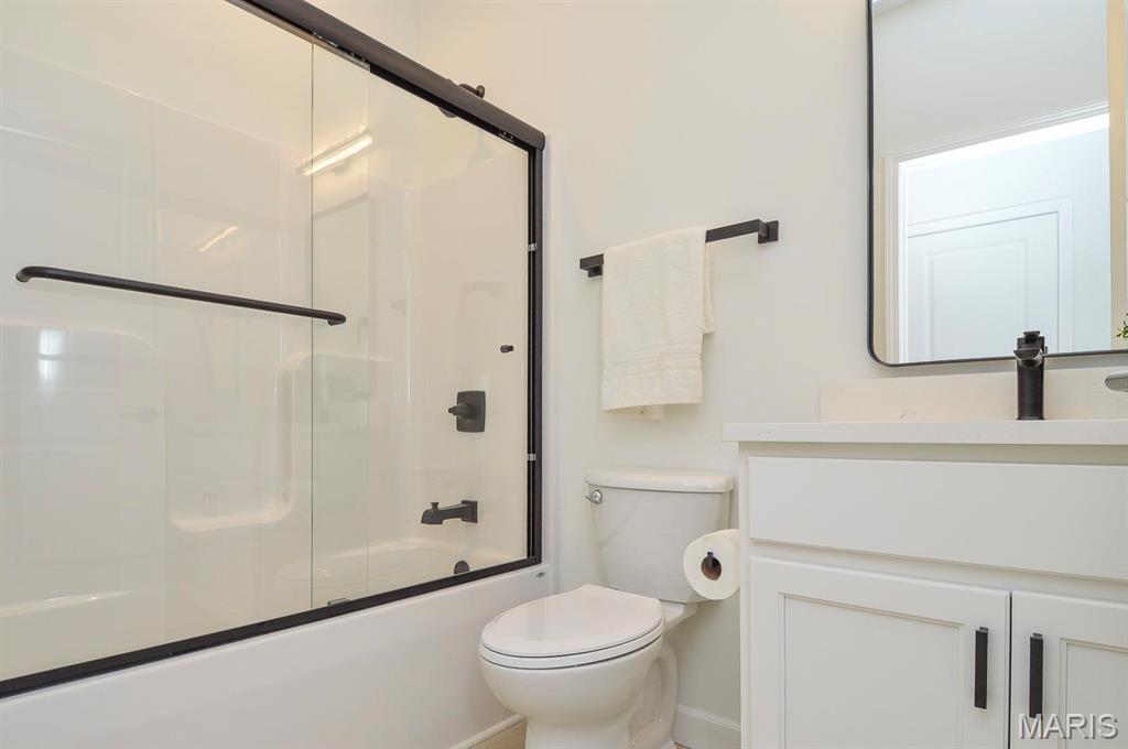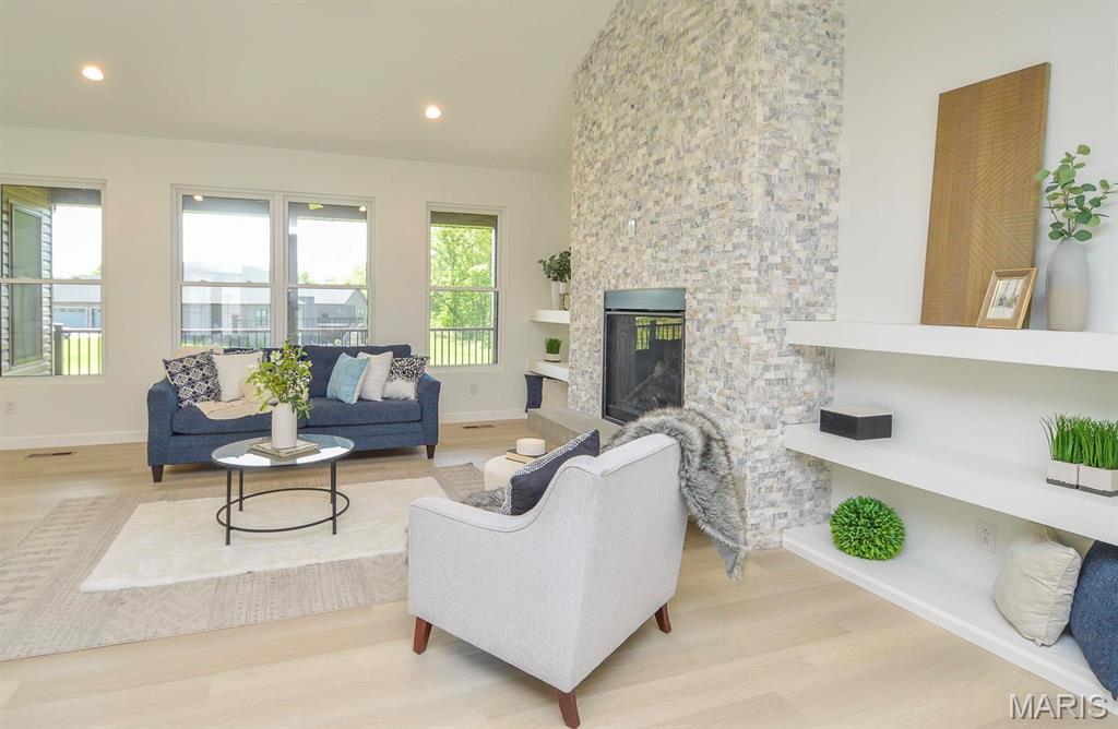 Beautiful 3/4 brick home. Main floor is 2,750 sq. feet. 9 foot ceilings throughout. Oversized, 3 car garage (810 sq. ft.) Open concept living area. Main bedroom on-suite has a free standing tub and tile shower. Off the main level is a covered patio with composite decking. Walkout basement. Basement floor has been acid stained. Great location just minutes from I-255. 5 minutes to Main Street, Columbia, 10 minutes to South County and 20 minutes to Downtown St. Louis.