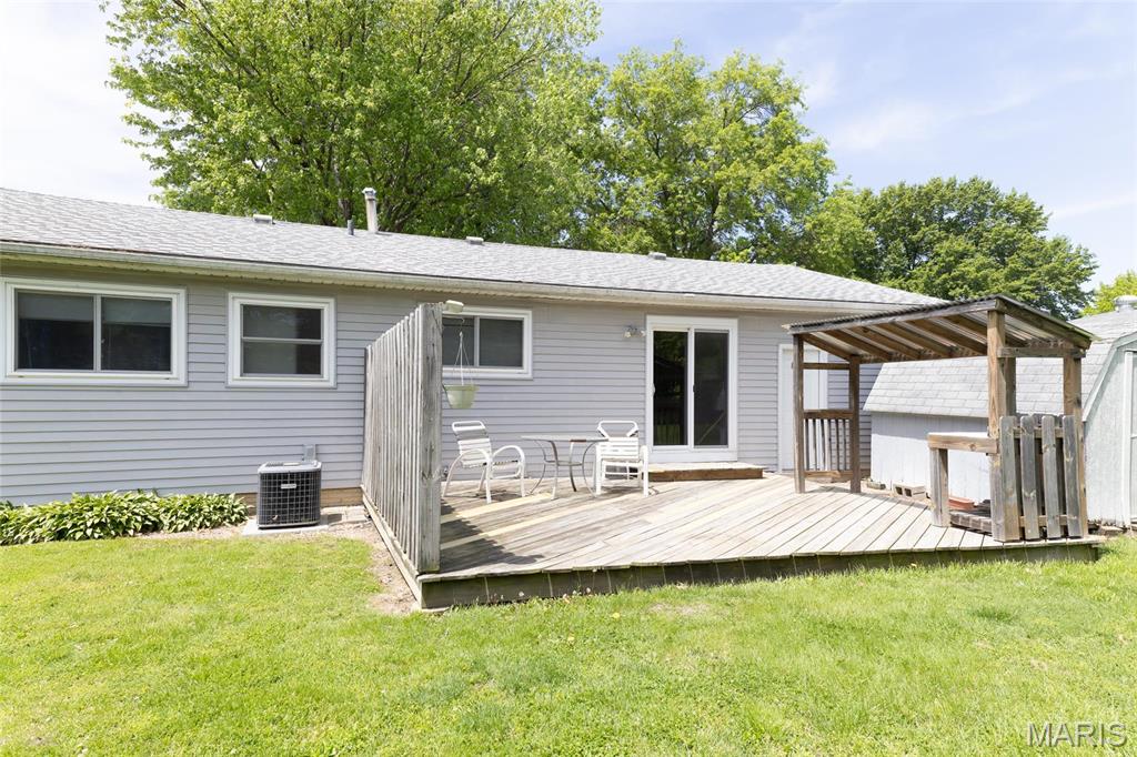 Located in the peaceful town of Moro, 3 bedroom, 2 bath home with 1 car garage and extra parking on the side. Kitchen includes all appliances, stove, refrigerator, dishwasher, microwave, pantry. Stove is gas, but electric hook up is present, and the lower cabinets have been replaced. Dining area has patio doors that lead out to a large deck for entertaining. Enjoy the nice flat backyard, with a shed for all your yard tools. Main bedroom has a 1/2 bath. A full unfinished basement, is waiting for your ideas. Washer and Dryer, dehumidifier, water softener all stay. Roof 2017, Gas water heater 2020, windows, siding 2004, High Efficient Furnace and air 2005, upgraded 6 panel doors. Located in the desired Edwardsville School Dist. Home Warranty is included.