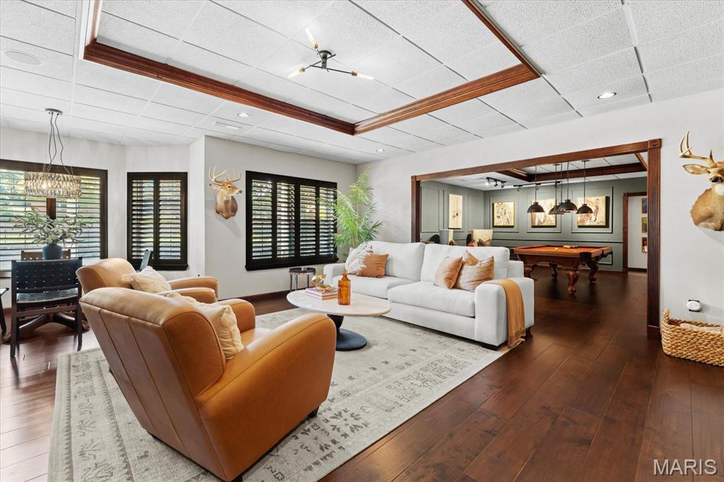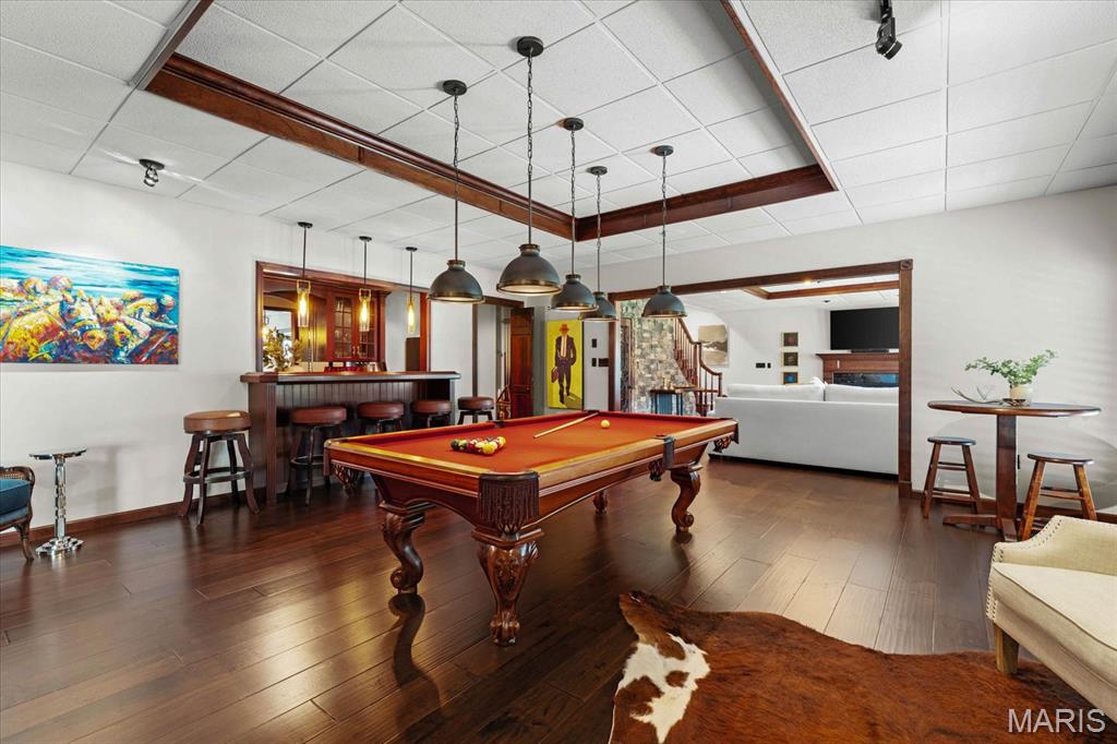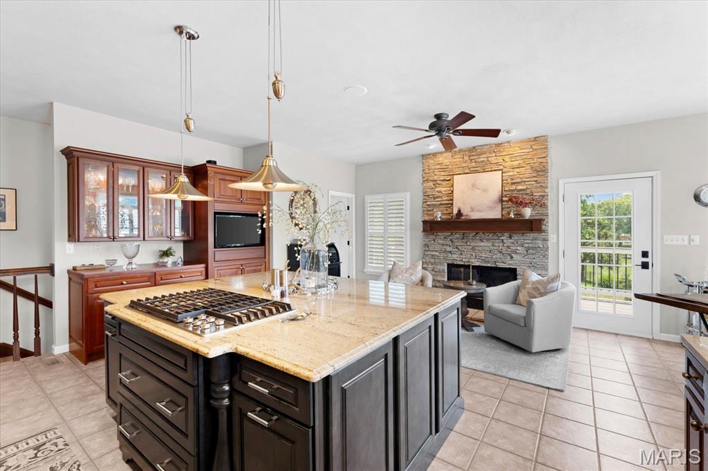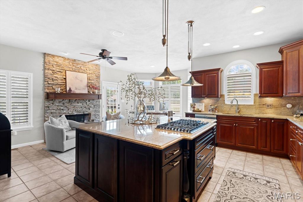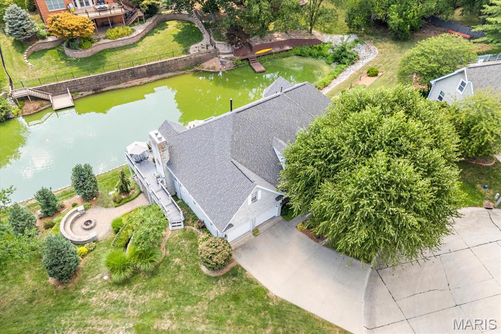 Welcome to this remarkable 4-bedroom, 4-bathroom residence offering the ultimate blend of elegance and comfort. Perfectly positioned on a cul-de-sac with direct lake access, this property showcases breathtaking water views from nearly every angle. Step outside to enjoy a spacious composite deck, a lower-level patio with fire pit, and endless opportunities to entertain. Inside, the open-concept living and dining areas feature hardwood floors, a cozy fireplace, and expansive lake views. The gourmet kitchen boasts granite countertops, an oversized island, a fireplace with intimate seating area, and a convenient powder room. The main-level private master suite offers dual closets and an updated spa-like bath with a floor-to-ceiling tiled shower and heated floors. Downstairs is a true entertainer’s retreat with a large family room anchored by a wood burning fireplace, wine cellar, pool table, wet bar, and access to the patio. A guest bedroom with full bath and walk-in closet, laundry room with built-ins, and a sauna area add to the lower level amenities. Two oversized storage areas, including one with a walk-out for workshop or utility use, provide practicality and flexibility. Additional highlights include a two-car finished garage. Many of the home’s systems have been updated within the past three years, ensuring peace of mind and modern efficiency. With luxurious updates throughout, this home is designed for both relaxation and celebration.