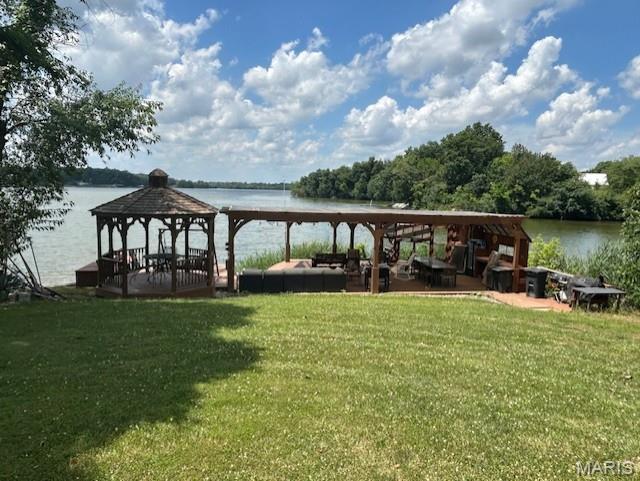 Lovely Lakefront home on 3 parcels (almost 4 acres total) with 2 boat docks, 1 with boat lift, 1 with dual jet ski lifts with 2 jet skis, plus 1,000 square foot deck with pergola overlooking lake. 50 foot sandy beach. Second building by lake with kitchen, half bath, and storage. House is fully furnished with 6 bedrooms and 3 full baths, great room with cathedral ceiling, basement game room with pool table, pinball machine, table shuffleboard, and slot machines. Additional 500 square foot pole barn, plus a 4-person golf cart. Extra parcels are 03-27-19-500-002 & 03-27-19-500-007