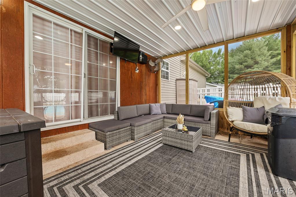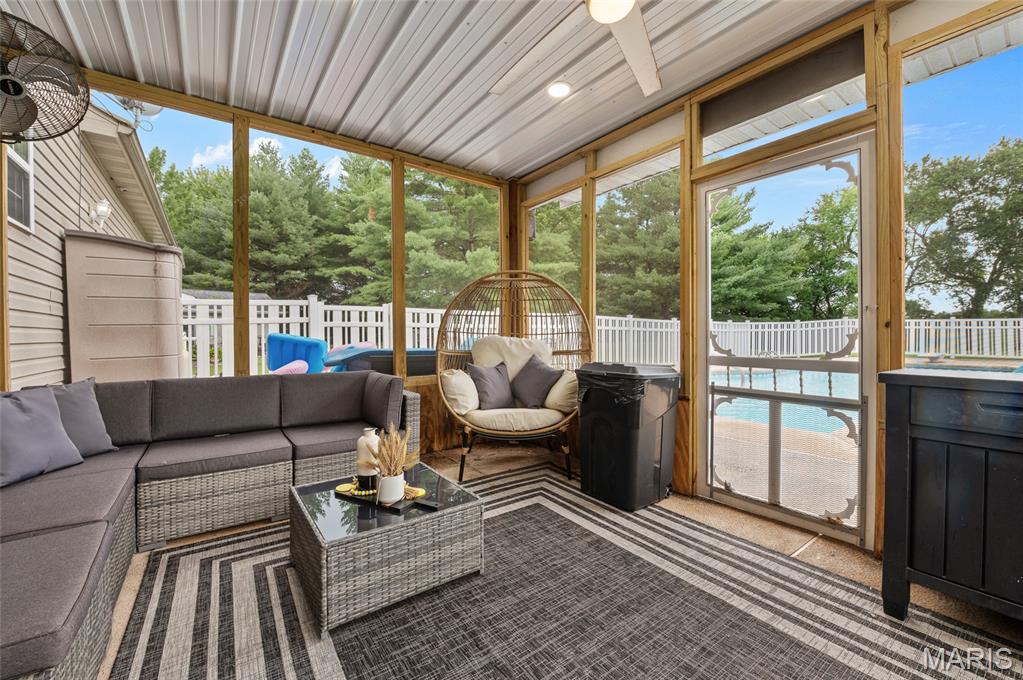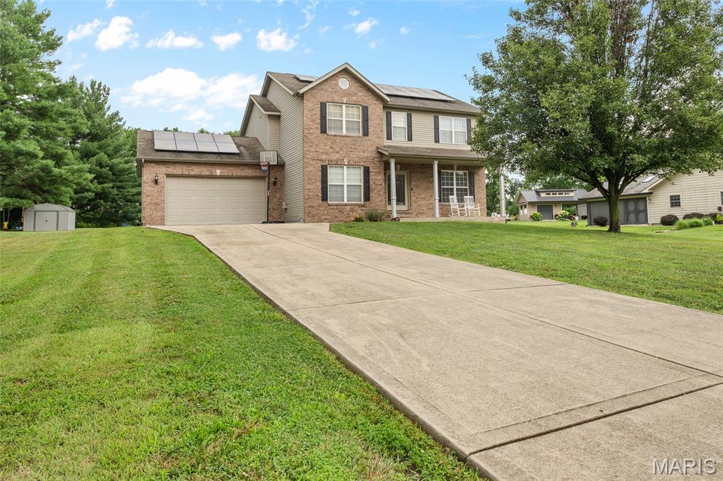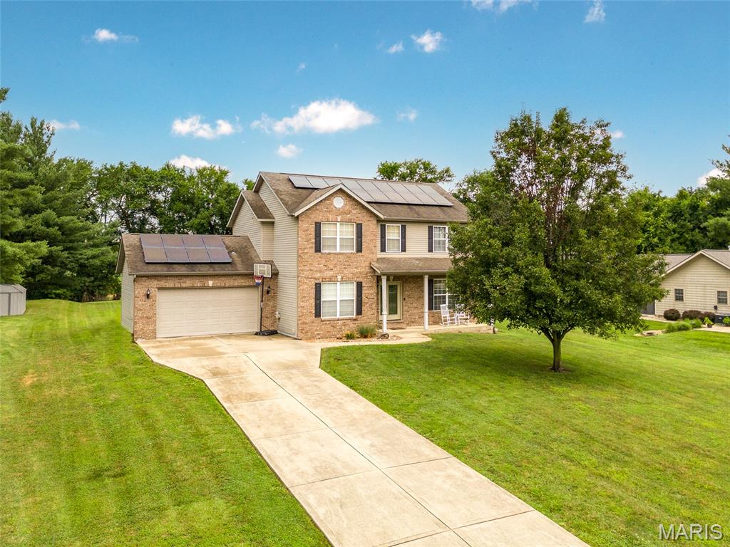 Designed with energy efficiency in mind, the home features geothermal heating and cooling along with solar panels to help reduce utility costs. Inside, the open and functional layout provides ample space for everyday living, remote work, or gathering with guests.