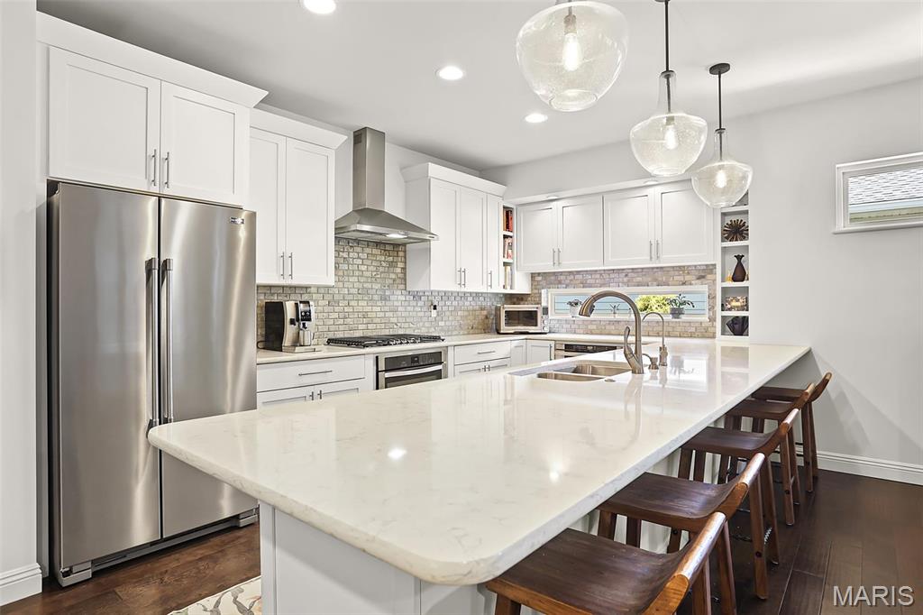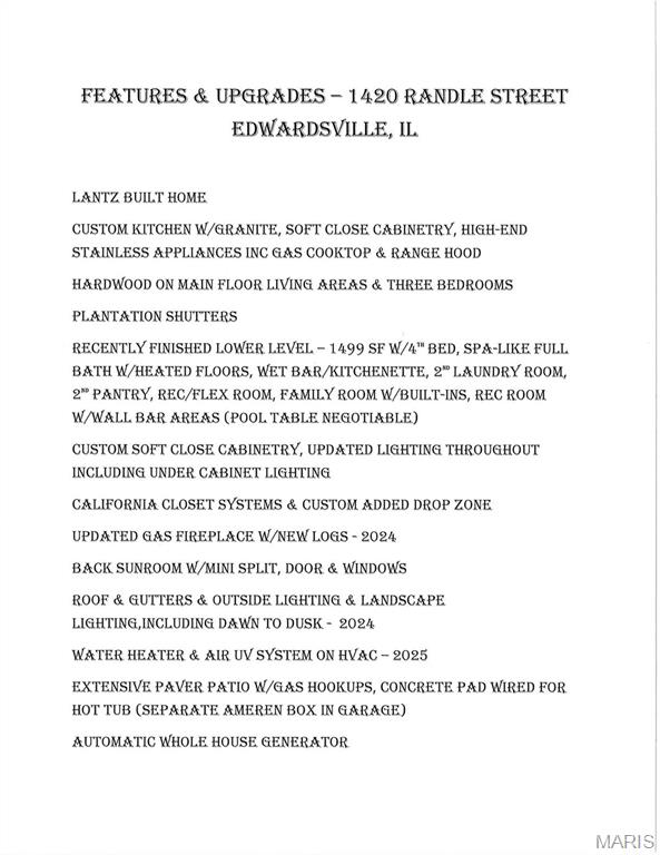 EASY TO SHOW/BACKUP OFFERS WELCOME! You’ll LOVE this downtown Edwardsville location, only one block from St Louis St! STUNNING UPGRADES greet you upon entering this IMMACULATE 1-owner ranch! First floor boasts an open floor plan w/every chef’s dream kitchen w/high-end stainless appliances, granite, tile backsplash & opens to living room w/floor-to-ceiling stone gas fireplace & formal dining room. Master suite w/spacious walk-in custom closet, ensuite bath w/dual vanities, tile & walk-in shower. Also on main level are bedrooms 2 & 3, 2nd full bath, drop zone & separate laundry area! Four seasons sunroom offers more relaxing & living space. Fabulously finished lower level has rec room, family room, 4th bed, w/egress & two closets, 3rd full spa-like bath w/heated floors, tub & walk-in shower, exercise/bonus room 2nd laundry area, 2nd pantry & amazing wet bar w/2nd fridge, wine cooler, granite, stone backsplash, & storage area. Outside space is amazing w/large covered front porch, private backyard w/massive paver & concrete patio wired for hot tub! Ask your favorite realtor for list of upgrades!