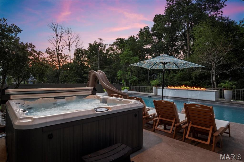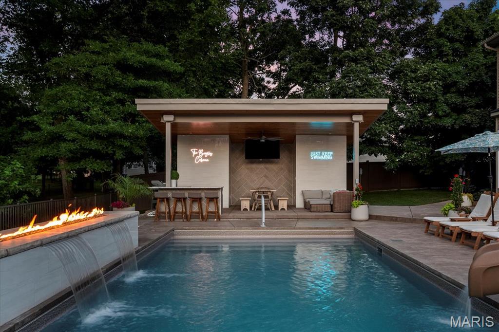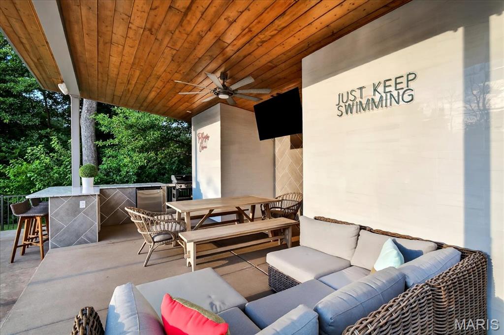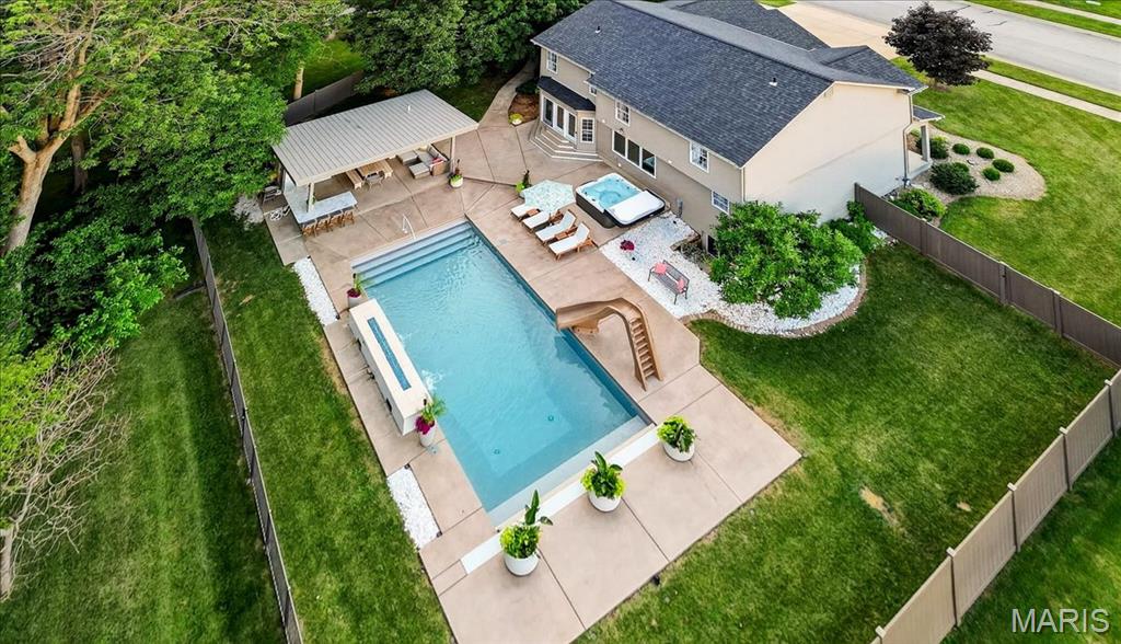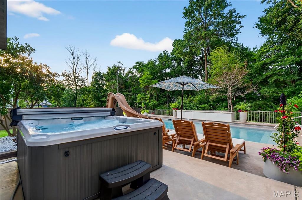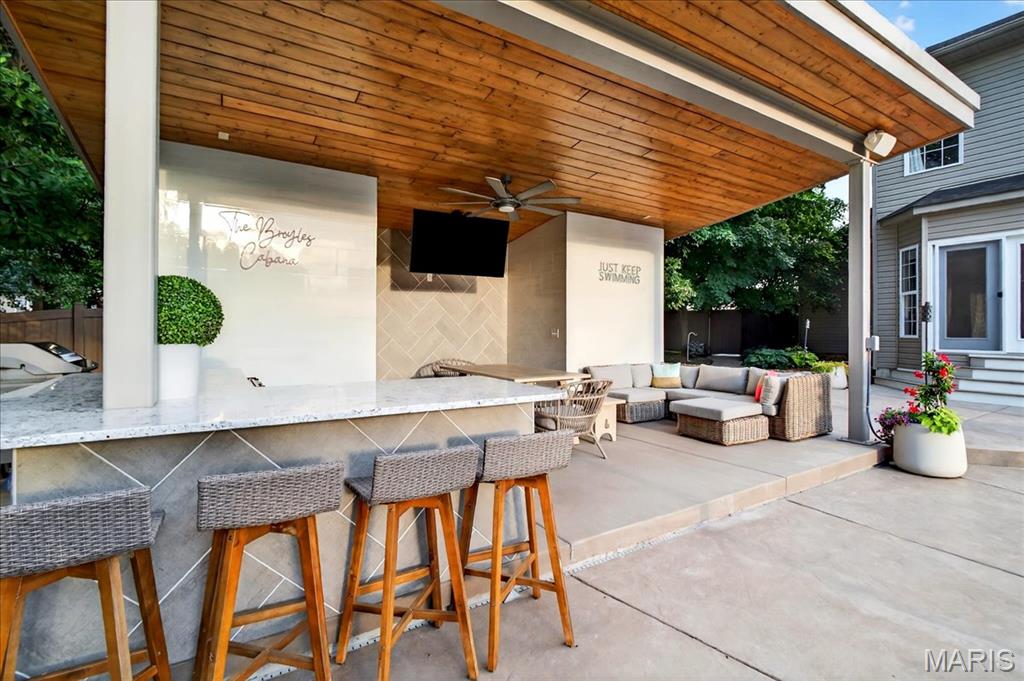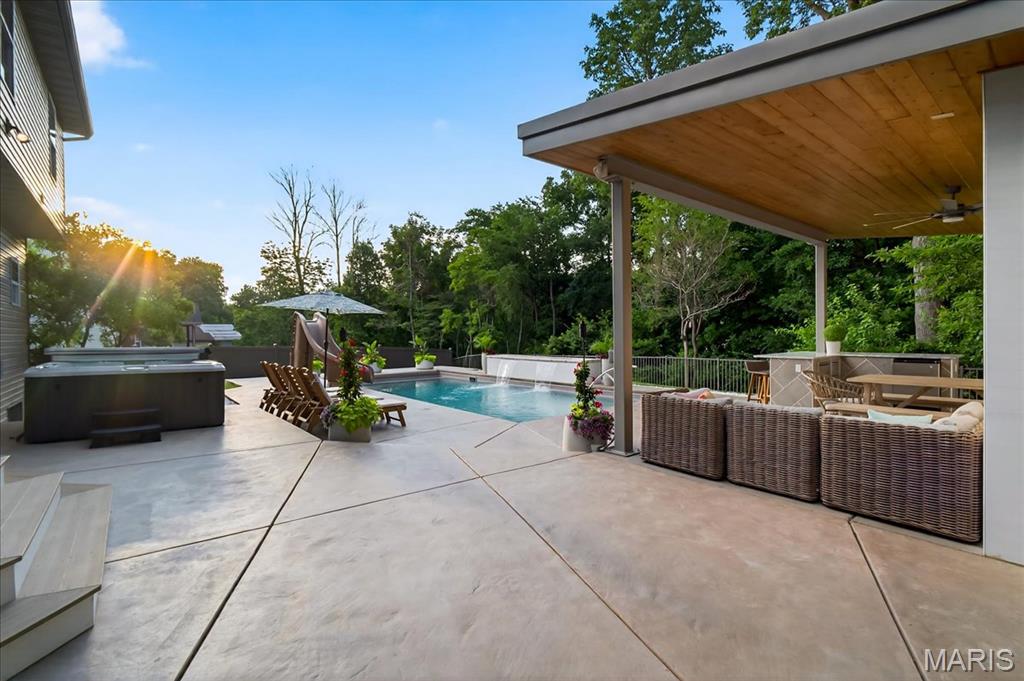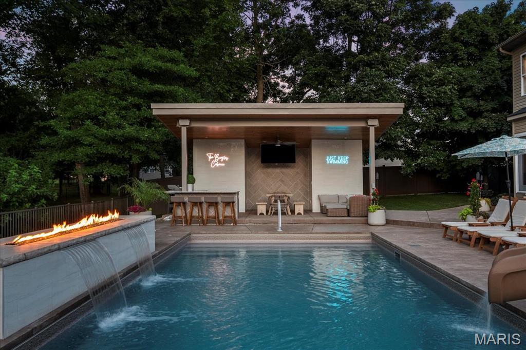 WELCOME TO THIS BEAUTIFUL HOME THAT TRULY CHECKS EVERY BOX! This updated 4-bedroom, 3.5-bath home offers thoughtful design and luxury finishes throughout. Step inside to gorgeous porcelain flooring that flows through the main level, a formal dining room w/ elegant molding and new fixtures, and an incredible kitchen featuring a large island w/ matte black accent, floating shelves, range hood, and all NEW appliances, including a double oven. Enjoy cozy evening by the fireplace w/ a whitewashed finish and NEW mantle, perfectly complemented by a charming picture window that overlooks the inground pool. The finished basement expands your living space w/ a full bath-ideal for guests or entertaining. Outside is a backyard paradise w/ nearly 200K in upgrades, including a stamped concrete patio, a heated saltwater pool, outdoor granite bar w/ mini fridge and a pool house w/ its own bathroom & storage. Additional features include an epoxy garage floor w/ a golf simulator (screen & projector included), updated water heater & HVAC and NEW roof! Conveniently located close to the sports park, bike trails, schools and more. MUST SEE!