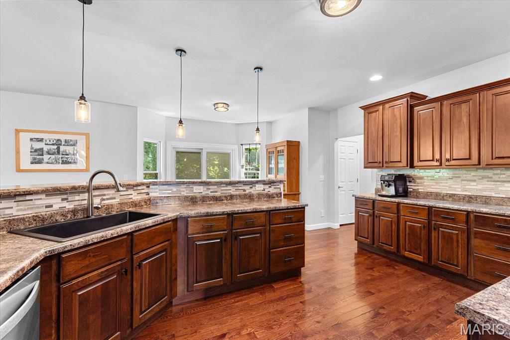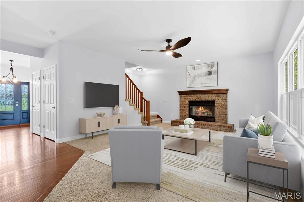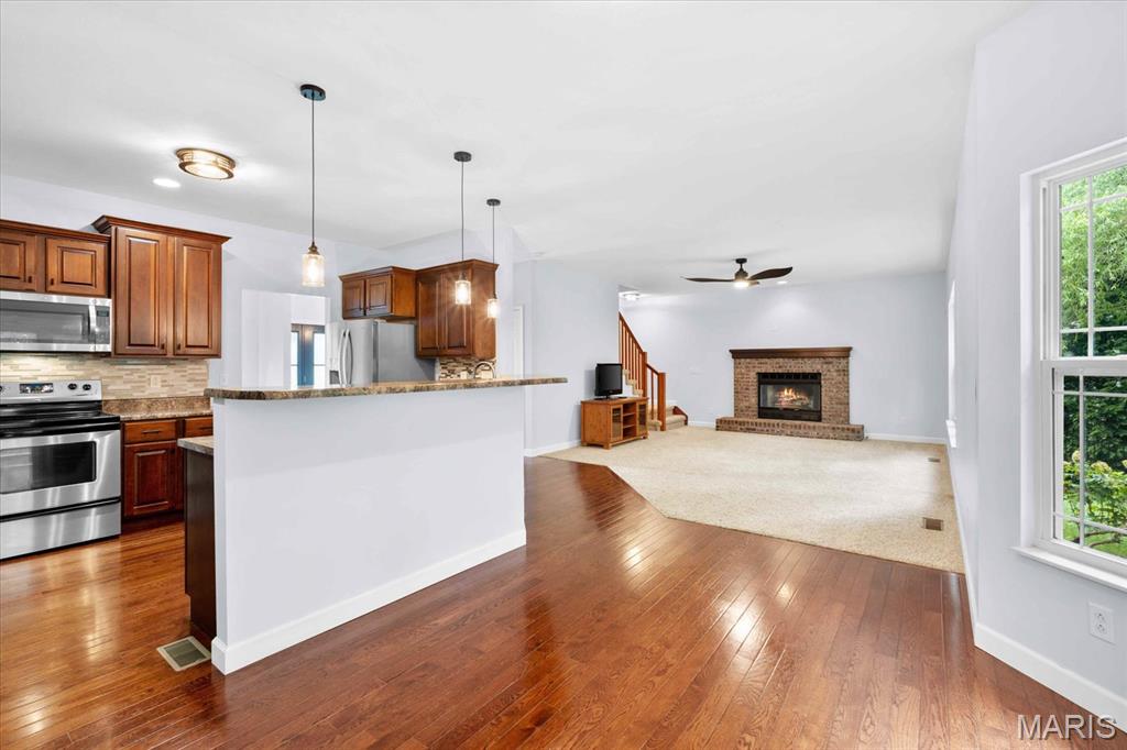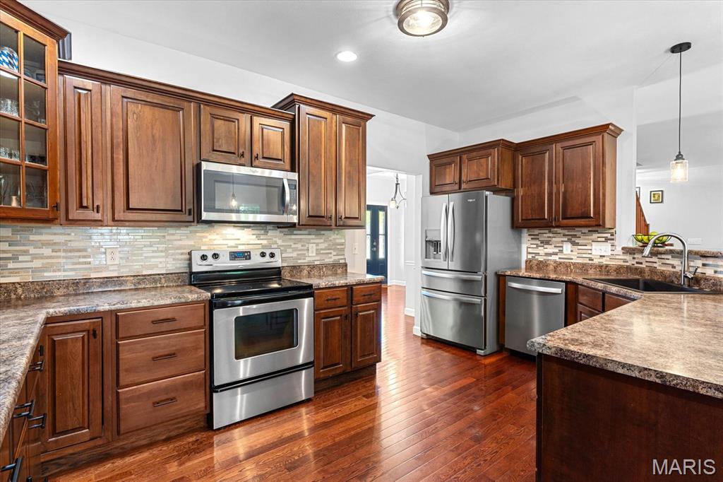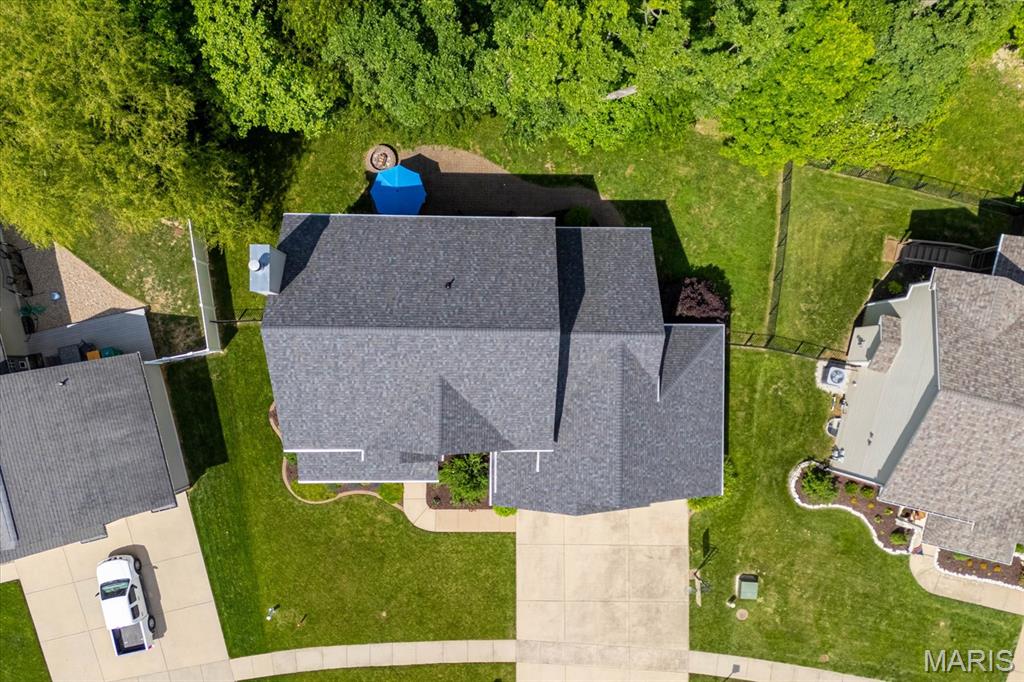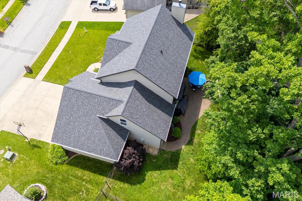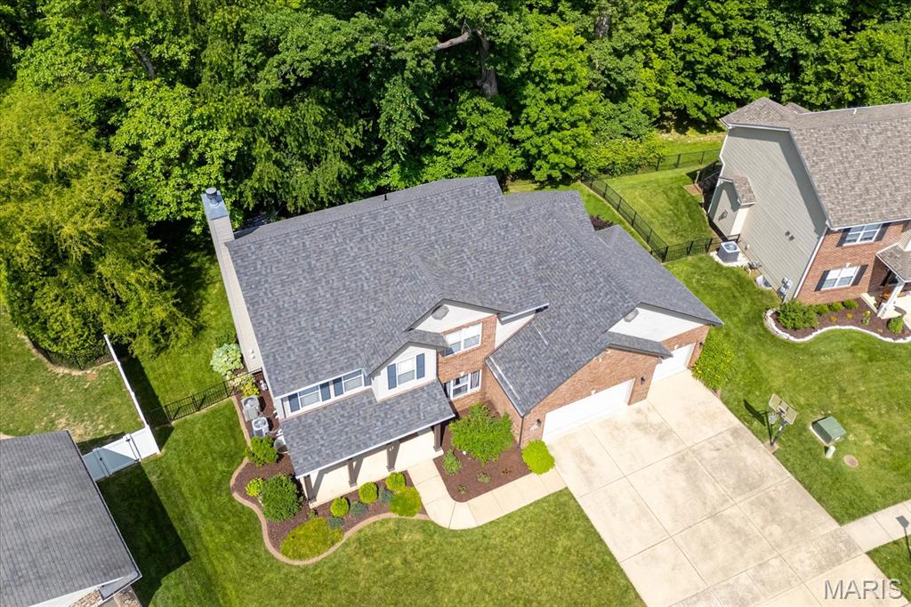 Meticulously maintained home boasting abundant upgrades! Featuring over 3700 finished sqft. The main level shines with new light fixtures and hardwood flooring, highlighting a kitchen with new backsplash/hardware, newer appliances, & a walk-in pantry. A sliding door off the breakfast room leads to a private wooded backyard with maintenance free steps and an oversized paver patio with firepit. The family room features a gas fireplace overlooking the wooded yard. Formal dining and living/office complete the main level, along with a half bath and laundry upgraded tile. Upstairs: loft with built-in storage awaits. The oversized master suite offers a deep tray ceiling and an ensuite bath with double vanity, private commode, separate tub and shower, plus a walk-in closet. 3 well-sized guest bedrooms and a refreshed hall bath with new fixtures and tiling provide ample space. A dedicated HVAC system (2024) serves the second level. The finished basement includes a 3/4 guest bath, open family room/rec area pre-wired for surround sound, and a fifth bedroom, plus lots of unfinished storage. Exterior: new roof (May 2025), upgraded front siding, new front door, & new fence. Massive 3+ car garage: extended ceilings, bonus niche area which also has backyard access. Additional features: new landscaping (2023), tankless water heater (2023), dual HVAC, Ring doorbell.