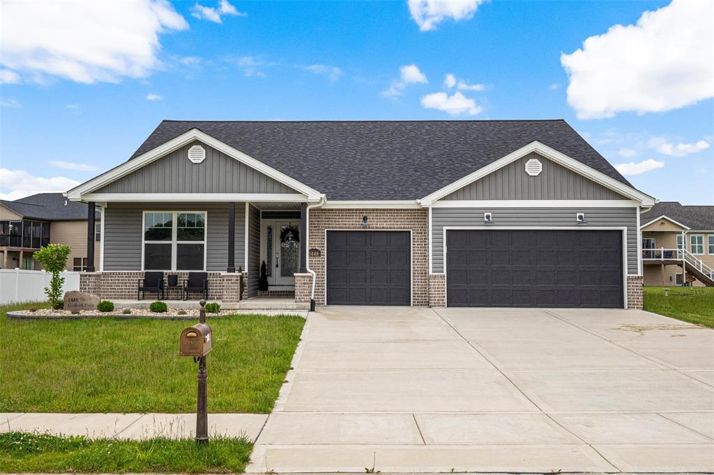 Welcome to this beautifully designed 3-bedroom, 2-bath ranch-style home offering 1,818 sq.ft. of open-concept living, complete with a 3-car garage and located just minutes from major highways and Scott AFB. From the moment you step inside, you’ll be impressed by the soaring vaulted ceilings and elegant LVP flooring that flow throughout the main living areas. The kitchen is a chef’s dream featuring 42” soft-close cabinets, granite countertops, a farmhouse sink, stainless steel appliances, a large island, and a spacious dining area ideal for gatherings. The split floor plan provides privacy and comfort, with the luxurious primary suite tucked away and boasting vaulted ceilings, abundant natural light, and an incredible en-suite bath with double vanity, marble shower, separate soaking tub, and a HUGE walk-in closet. Additional highlights include a custom mudroom off the garage for smart storage solutions, a generous main-floor laundry room, and a full basement with an egress window and rough-in for a future bathroom ,ready to finish to your liking. Comes with builder warranty and located in Triad School District.