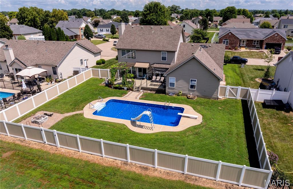 Your dream home awaits! Feel the warmth of sunlight spilling through soaring windows casting a glow over your living space. Hear the gentle hum of laughter as friends gather around the granite kitchen counters, the heart of the home where meals become memories. Breathe in the freshness from your private fenced backyard oasis, where an inviting sparkling inground pool glistens under the afternoon sun. Imagine summer days filled with the cool splash of water on your skin and evenings where the only soundtrack is the whisper of the breeze. Every level of this home is designed for space and comfort. Feel the freedom over oversized bedrooms, the flex space of the 5th bonus room/bedroom. Sprawling lower level family /rec room perfect for game night and binge worthy movie marathons. Walk outside to enjoy the breathtaking sunsets over Horseshoe Lake; watch the sky melt into vibrant shades of pink/orange. Centrally located for convenience. All this for $340,000.00! Spacious & entertaining. Grab it before summer ends.