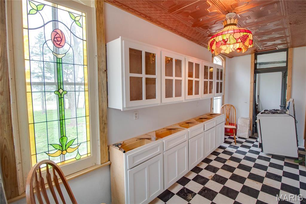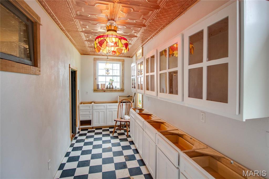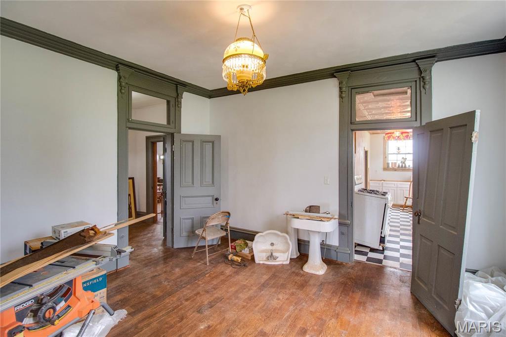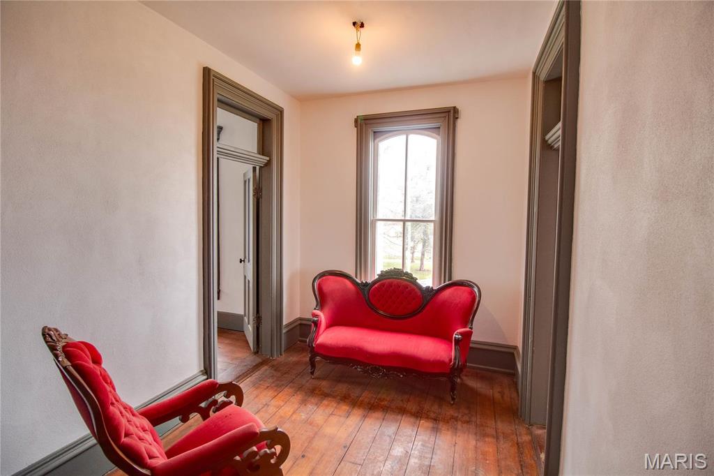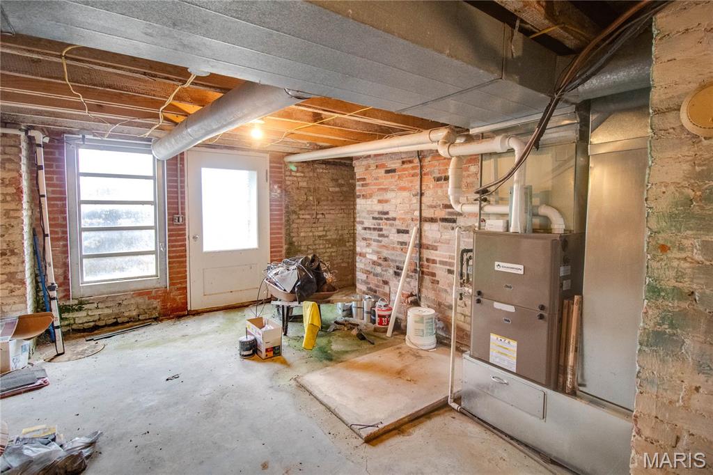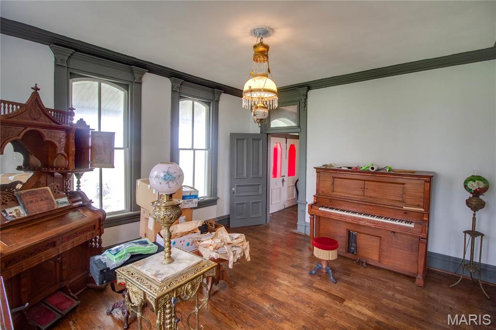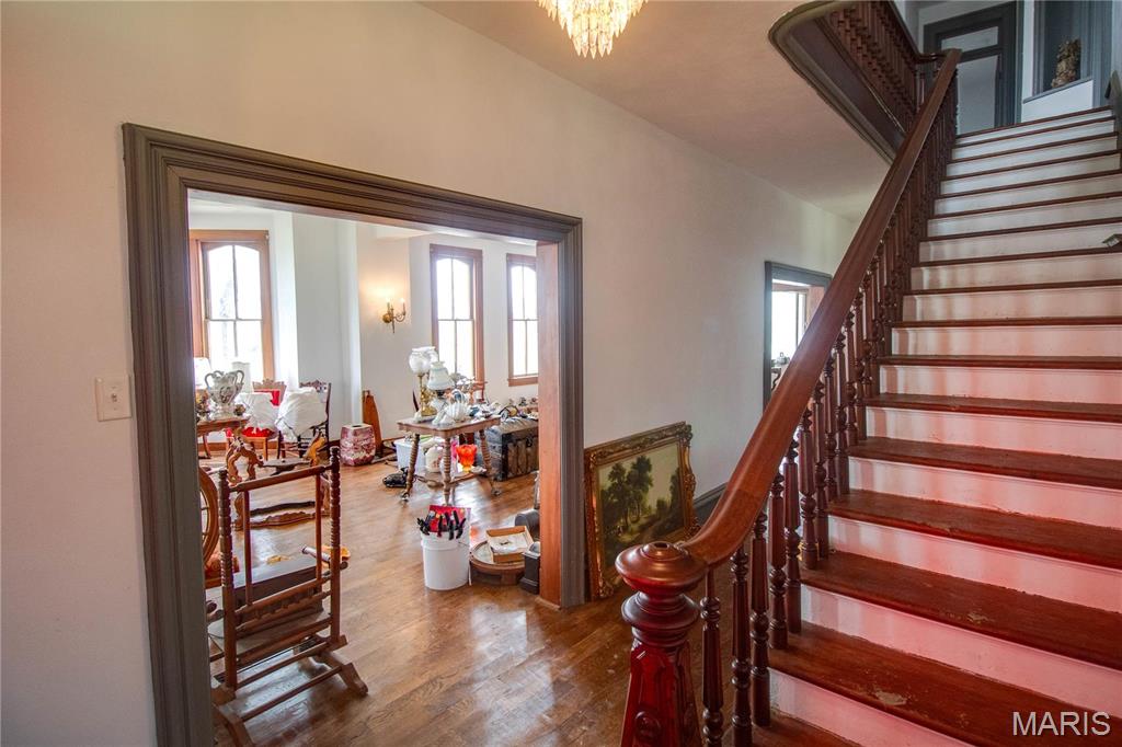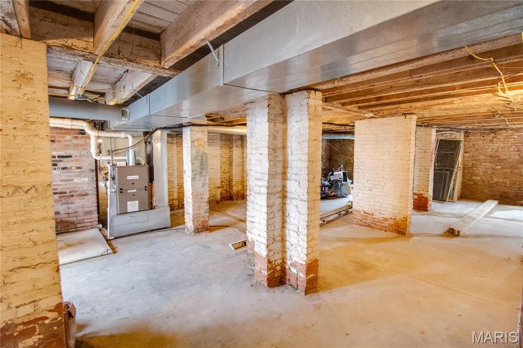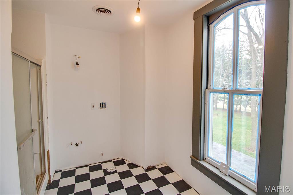 Main house boasts a two-story entryway, spacious living & sitting rooms, formal dining room, breakfast room w/ wood flooring throughout, 6 bedrooms & 2 partially finished baths. Partially finished kitchen offers customization potential. Upstairs includes a large sitting area, all 6 bedrooms, & a second partially finished kitchen accessible via back staircase. Lower level is an unfinished brick space w/ laundry hookups.