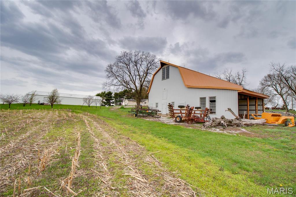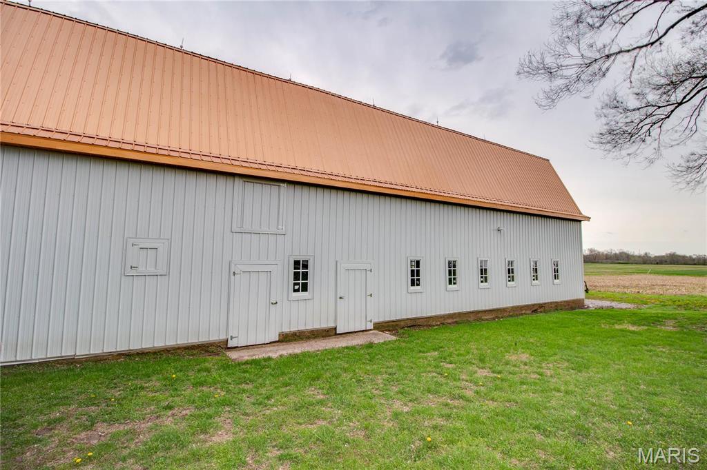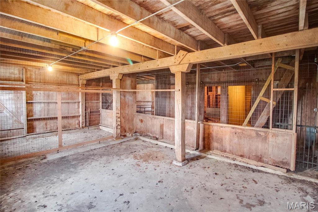 Large barn has two stalls, a feeding room, multiple bonus rooms on lower level, & expansive upper level w/ wood flooring & 22-ft ceiling.