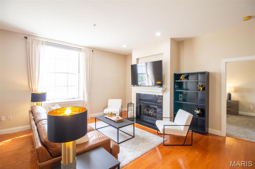 Situated on the 6th floor of The Georgian Condominiums is this spectacular open floor plan unit! As you walk in the front door, you are greeted by the large kitchen, featuring ample cabinetry, granite counters, pantry, and breakfast bar! Opening right into the dining room, the perfect place to host parties or holidays! The living rooms boasts loads of natural light and fireplace! The primary bedroom features a large walk-in closet and spacious bathroom! This unit also provides an additional large guest room with large walk-in closet, full guest bathroom, and laundry room! Located just steps from gorgeous Lafayette Square, Soulard, and Highways. Call for your private showing today! Buyer to verify all MLS data. Location: Upper Level