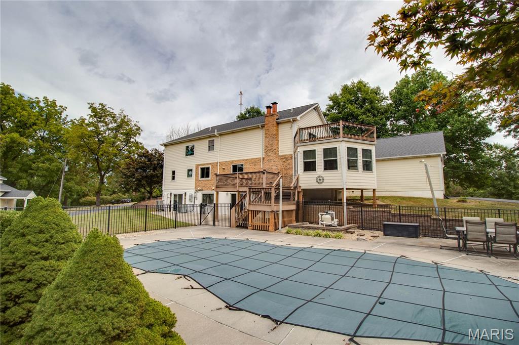 Welcome to this beautiful 3-bedroom, 4.5-bathroom home, perfectly situated on a secluded 5-acre lot. This private residence features a saltwater pool with fence surround, an entertainers’ patio, a multi-tiered composite deck, a covered patio, an outdoor fire pit area, a 2-car attached garage, an additional 2-car detached garage that includes electric vehicle charging station, with a loft. The main level offers a versatile living room filled with natural light, and a spacious formal dining room with a cozy fireplace and an adjoining sitting area. The eat-in kitchen boasts cherry cabinetry, granite counters, and porcelain tile floors. A mudroom, a climate-controlled sunroom, and a full bath complete this level. Upstairs, you’ll find a luxurious master suite with a vaulted ceiling, a walk-in closet, a bay window, and an attached bath featuring stunning tile work, a walk-in shower, a jacuzzi tub, and a double vanity. The finished walk-out basement provides a family room with a wood-burning stove, a bonus room, and a half bath, leading directly to the patio and fenced pool area. You don’t want to miss this one!