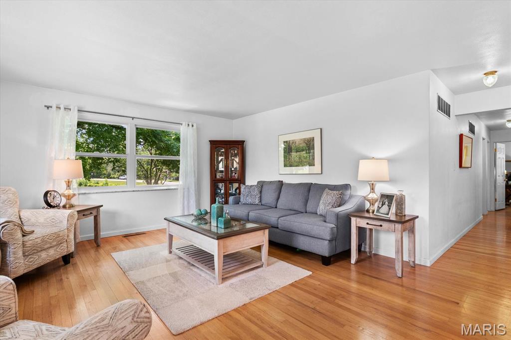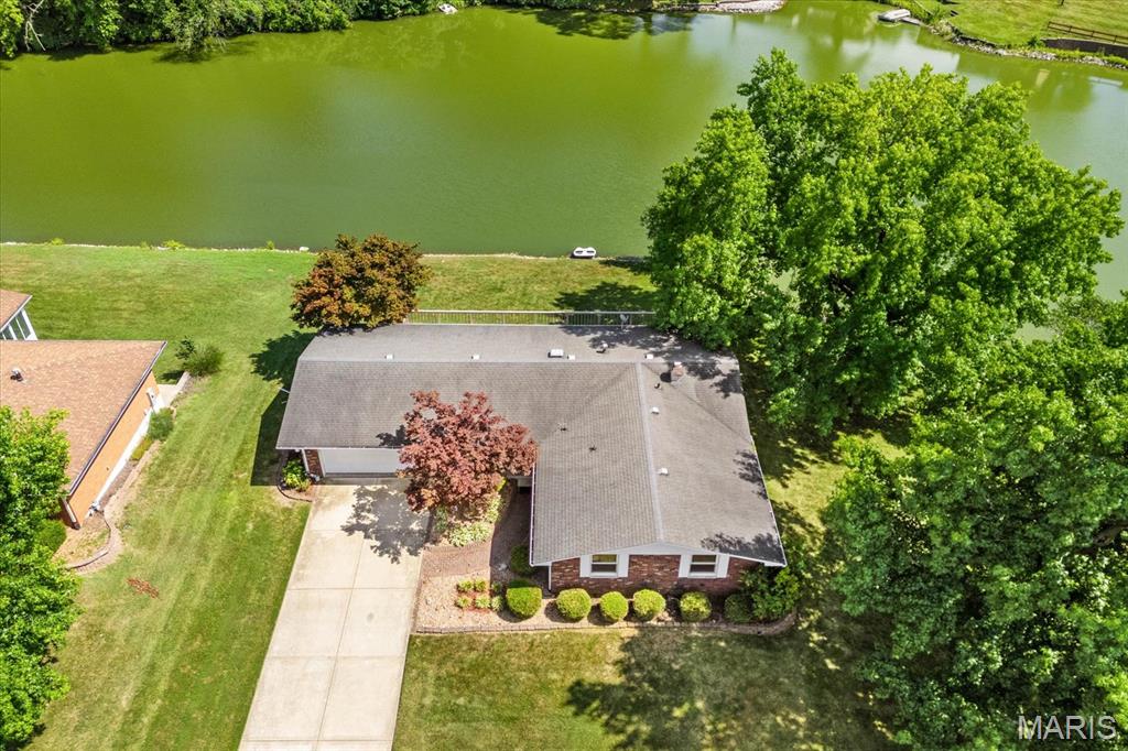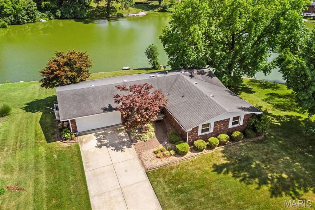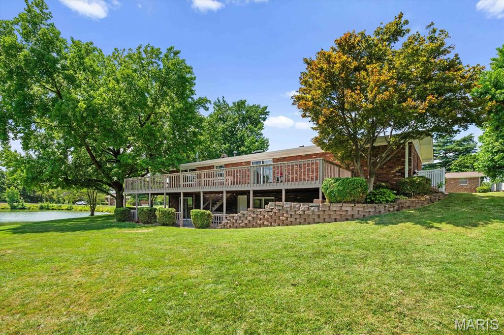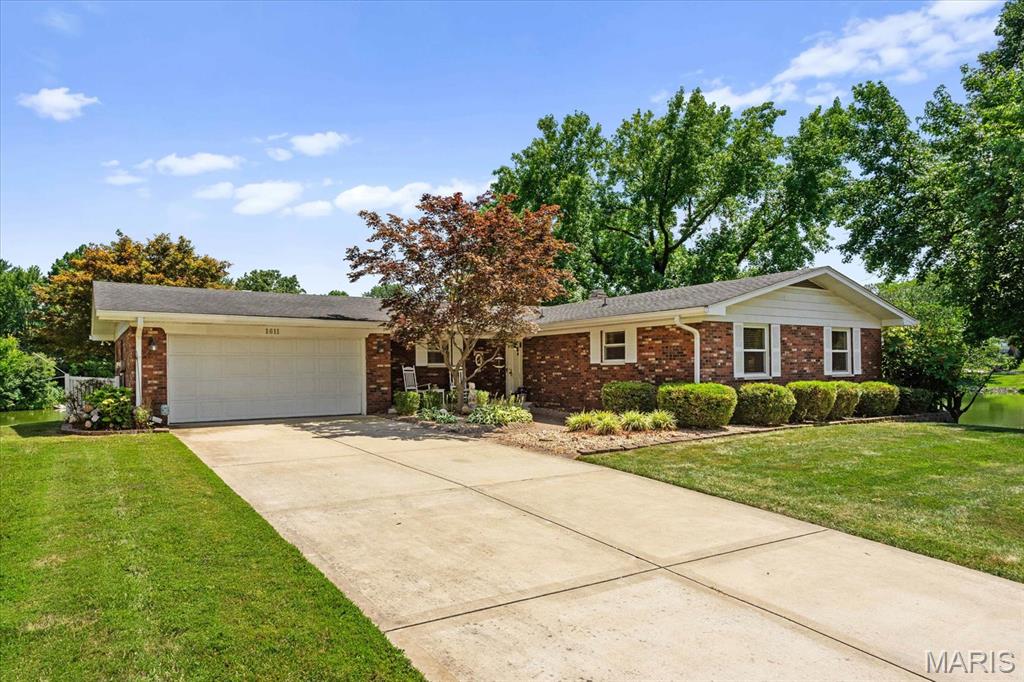 Discover your dream home at this stunning waterfront oasis alongside the prestigious Tamarack Golf Course in the sought-after O’Fallon community, where golf is a way of life! This charming full-brick ranch-style home, on a generous .43-acre lot, offers a peaceful retreat with picturesque water views and beautifully landscaped grounds.