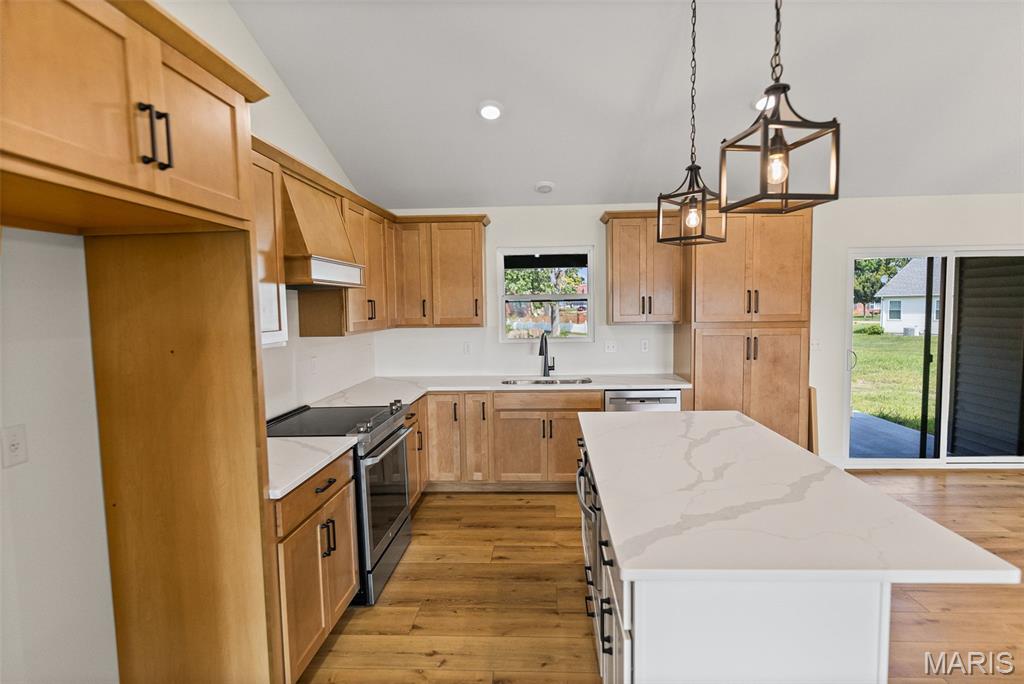 New Construction in Schrieber Farms – Homes by Keller presents stunning 3BR/3BA 1,750 sq. ft. ranch with 3-car garage, blending modern design with timeless comfort. Open-concept kitchen and living area perfect for entertaining. Features vaulted ceilings with a striking cedar beam, a cozy fireplace, and luxury vinyl plank flooring throughout. Chef’s kitchen boasts quartz countertops, spacious center island, and soft-close cabinetry. Stove, dishwasher, and microwave are included in the base price. Retreat to the primary ensuite, designed for relaxation with a double vanity, separate soaking tub, and elegant onyx walk-in shower. Convenience meets style with a main-floor laundry drop. Basement provides an egress window and a full bath rough-in. Spacious backyard is ideal for gatherings, featuring a large covered patio and plenty of room to add your dream pool. Don’t miss your chance to own this beautifully crafted home in a sought-after community!