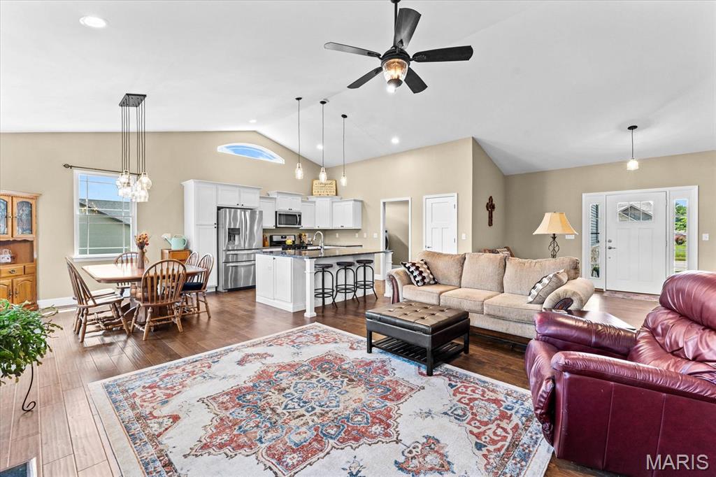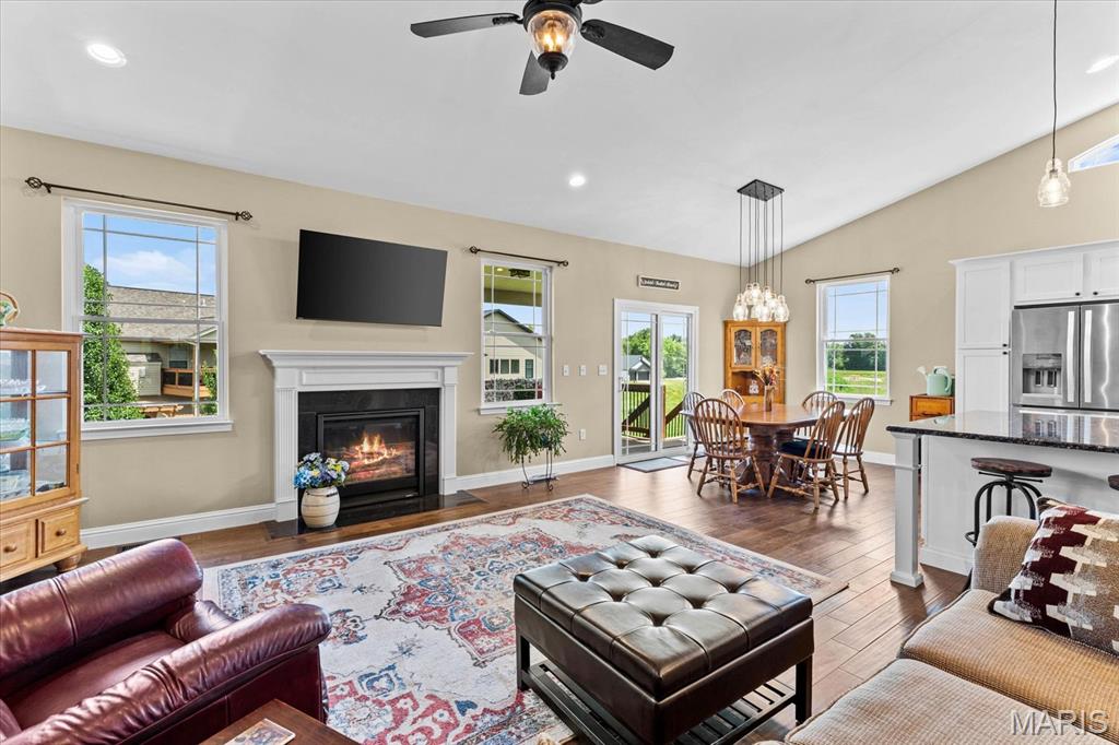 This thoughtfully designed home feels just right, offering the kind of layout that makes everyday living feel effortless. With three bedrooms on the main level and a fourth in the lower level, there’s space for everyone to spread out—whether that means crisp mornings sipping coffee on the covered deck or lively evenings with friends gathered around the oversized kitchen island. The heart of the home is the open-concept kitchen, where pretty wood floors, high ceilings, and that dreamy island make cooking and baking a joy. It’s the kind of space that invites you to linger, flowing from the kitchen into the living room with its gas fireplace, the walkout lower-level family room with an additional fireplace flanked by built-in bookshelves, or outside to the deck and patio. Even the laundry room is perfection, with extra space coming in from the 3-car garage for a drop zone, and an added window to make every day cheerier. The lower-level fourth bedroom hides its own private full bath—perfect for a guest suite, in-law setup, or a private lair for that teen or college student. There’s also a convenient half bath off the family room for everyone else. Storage is abundant, including a garage storage system and an additional small garage bay accessed by the back yard that’s ideal for lawn equipment, patio furniture, or toys. From the manicured corner lot to the meticulously maintained finishes, this home is as beautiful as it is functional.