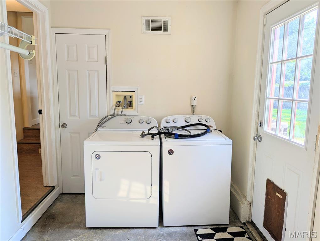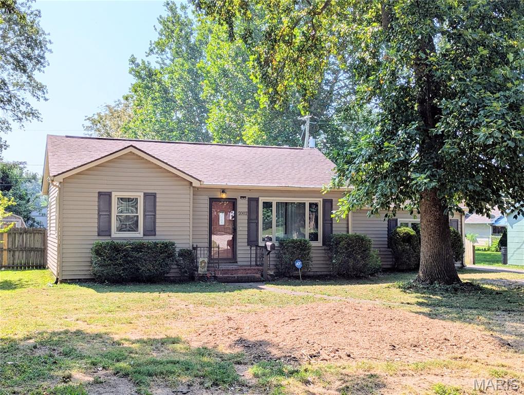 Welcome Home! This quaint, ready to move in property is exactly what you have been waiting for. The large Living Room and front window provides ample space and amazing natural light as well. The Kitchen/Dining Area includes plenty of cabinet storage and the Refrigerator, Gas Range & Dishwasher. The Primary Bedroom has original wood floors and two closets. Of the remaining two Bedrooms, one has original wood floors and the other has wall built-ins. The Laundry Room includes the Washer & Dryer and has access to the private fenced-in backyard area, perfect for some BBQ’s and outside activities. The property also includes a detached oversized Garage for whatever you want to use it for… parking, storage, etc. Great location, close to Interstates, Scott Air Force Base, STL everything… Zoo, Arch, STL Sports games, etc. Schedule a showing with your favorite Realtor today! *Bathroom exhaust fan does not work*