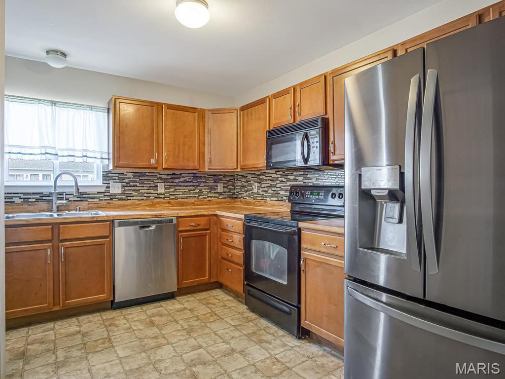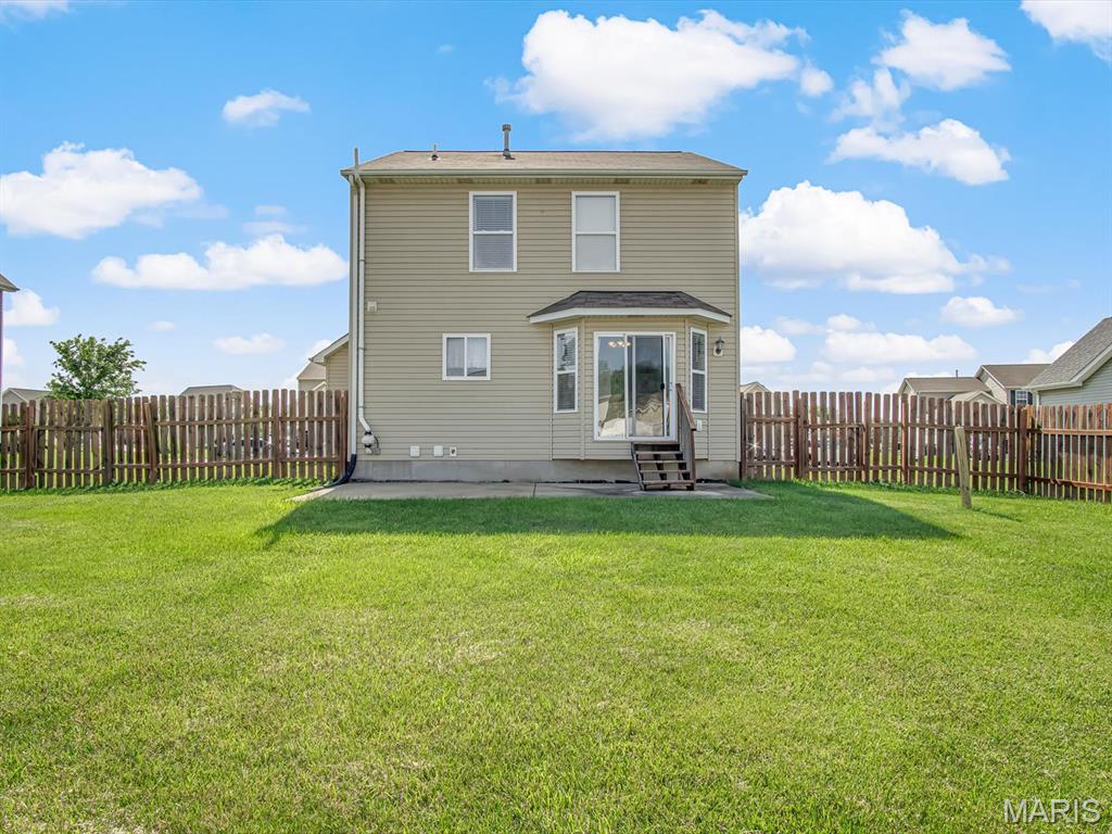 Step inside this fantastic two-story home and find a cozy living room featuring a modern electric fireplace and brand-new vinyl plank flooring. The kitchen comes fully equipped with a stainless steel refrigerator (Ice maker and Water Fountain is not functional), dishwasher, electric range, and microwave, plus a convenient pantry. Off the dining area, patio doors lead to a spacious patio, perfect for entertaining in the large, fenced-in backyard. You’ll also appreciate the main floor laundry for added convenience.