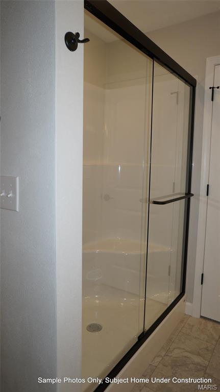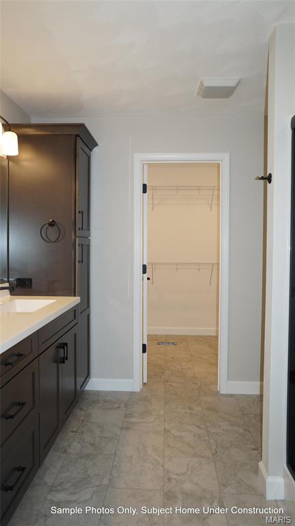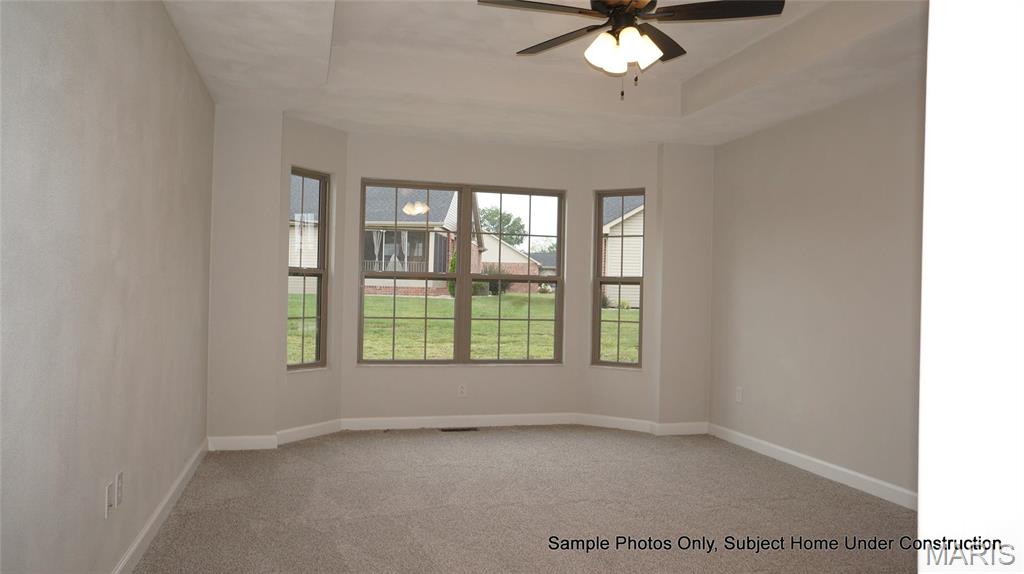 features a bay window and walk in closet. Master bath has double bowl vanity and 5′ walk in shower.