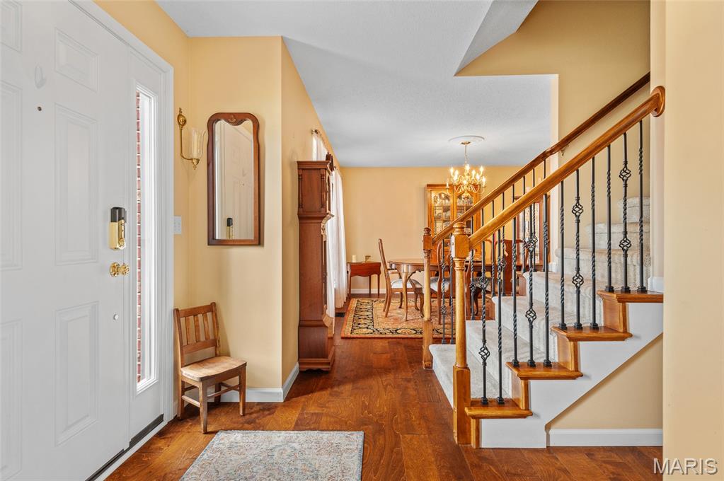 Welcome to this stunning 2-story home featuring a classic brick front and updated landscaping that enhances curb appeal. Inside, you’ll find engineered hardwood flooring throughout the main level, creating a warm and elegant feel. The main floor offers a spacious family room with a cozy gas fireplace, breakfast room, formal living and dining rooms, a convenient half bath, and a beautifully updated kitchen complete with quartz countertops, stainless steel appliances, a breakfast bar, and a customized pantry.