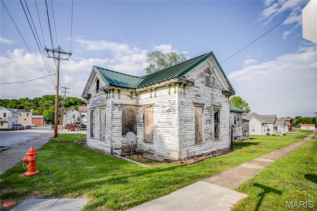 Bring your tools or the bulldozer. Situated on a corner lot, outside of risk of flooding is a home loaded with potential! This property is stripped down mostly to the studs, and you can get creative and change the floor plan as you like. Offering a good standing seam metal roof and unique architectural features. a detached 28 x 24 garage built in 1998. Close proximity to schools, banking, restaurants and pubs. Use caution when touring the property. All buyers to be pre-qualified prior to viewing. And must be accompanied by their designated Broker. No children allowed inside. Cash or conventional construction loan. OPEN TO OFFERS! Suitable location for DUPLEX or business use.