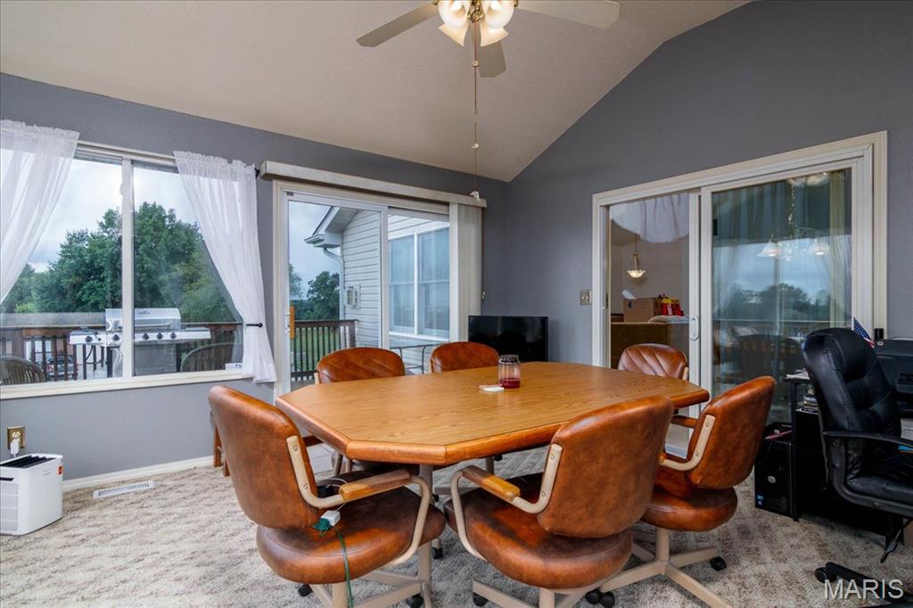 Well-Maintained 3 Bed, 3 Bath Home on 1.6 Acres with Views of Carlyle Lake. Located just north of Carlyle in a well-established rural subdivision, this beautifully maintained three-bedroom, three-bath home offers space, comfort, and scenic surroundings. Situated on 1.6 acres with two additional lots included, the property provides both privacy and room to roam. The main level features an open floor plan with a spacious living room that includes a cozy gas fireplace, a functional kitchen with center island and all appliances included, and a bright dining area that flows seamlessly into a large sunroom — perfect for enjoying the view year-round. The main floor also includes three bedrooms and two full baths, offering convenient single-level living. Downstairs, the finished basement includes a generous family/game room, an additional full bath, and a laundry area — ideal for entertaining or extra living space. Outdoors, enjoy a huge backyard with a secluded patio area and a deck that offers beautiful views of Carlyle Lake, making it the perfect retreat in every season. HWH – 5 years old, Roof approximately 10, HVAC – original. Sale Includes 03-03-15-210-040/03-03-15-210-037/03-03-15-210-009