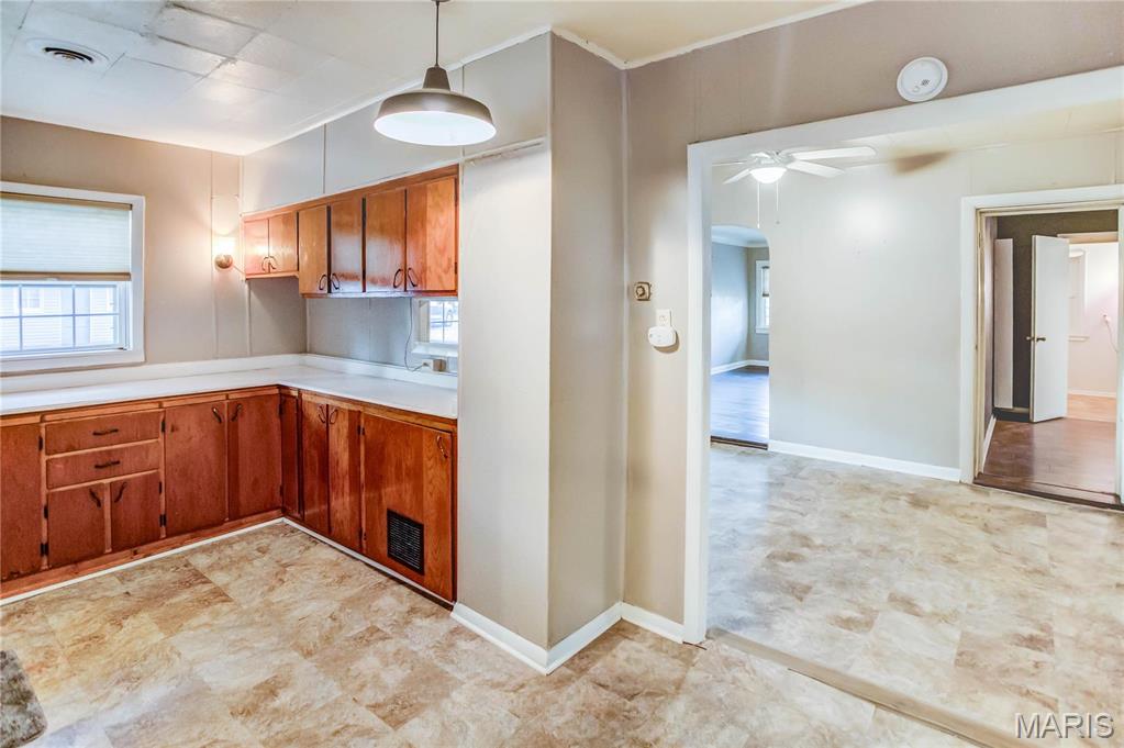 Here is a 3-bedroom, 2 bath home with a nice level lot that includes a 10 x 14 storage building with covered porch and alley access. You’ll love the natural light from the front picture window in the 18 x 12 Living room. Step down into the dining area that leads to the main bedroom with a walk-in closet, a full bath with newer water heater. In the kitchen the refrigerator, built-in oven and cook top are included. Another two bedrooms are off the kitchen and a 3/4 bath with shower stall. Cabinet doors are in the shed for this room. Laundry is located at the rear of the home. Replacement windows added throughout, excluding back porch. Ameren electric and natural gas, public water and sewer. Roof 2012, Central Air 2001, water heater’s 2018/1993. Furnace is located in the attic (est. 2001). Come see if this could work for you.