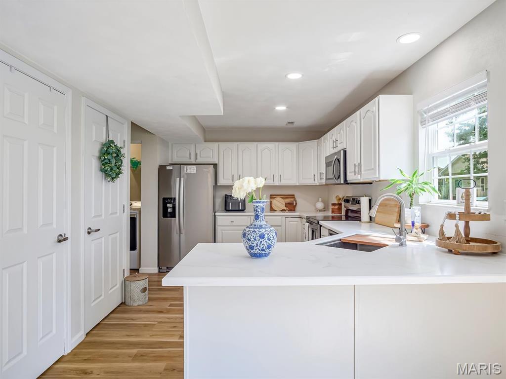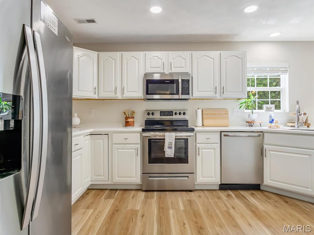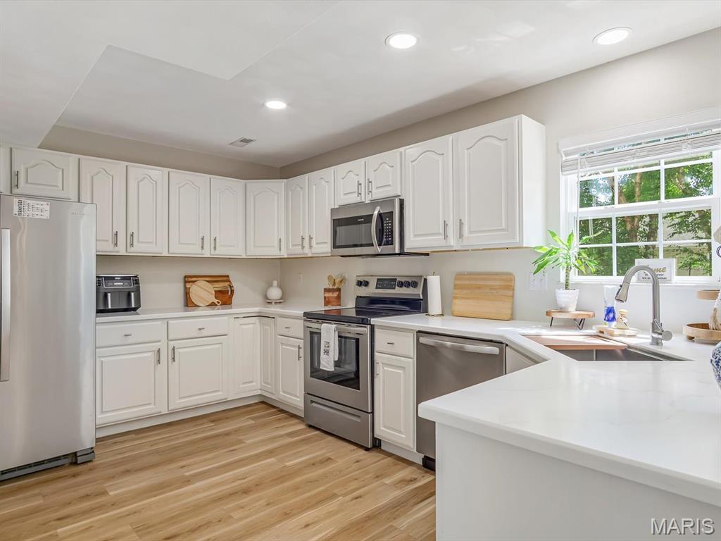Don’t miss this updated 3-bedroom, 2.5-bath two-story townhouse located in the highly sought-after Freeburg School District! The main level features a spacious open-concept living and dining area—perfect for entertaining—plus beautiful new LVP flooring. The kitchen offers custom cabinetry, a pantry, solid surface countertops, a breakfast bar, and ample prep space.