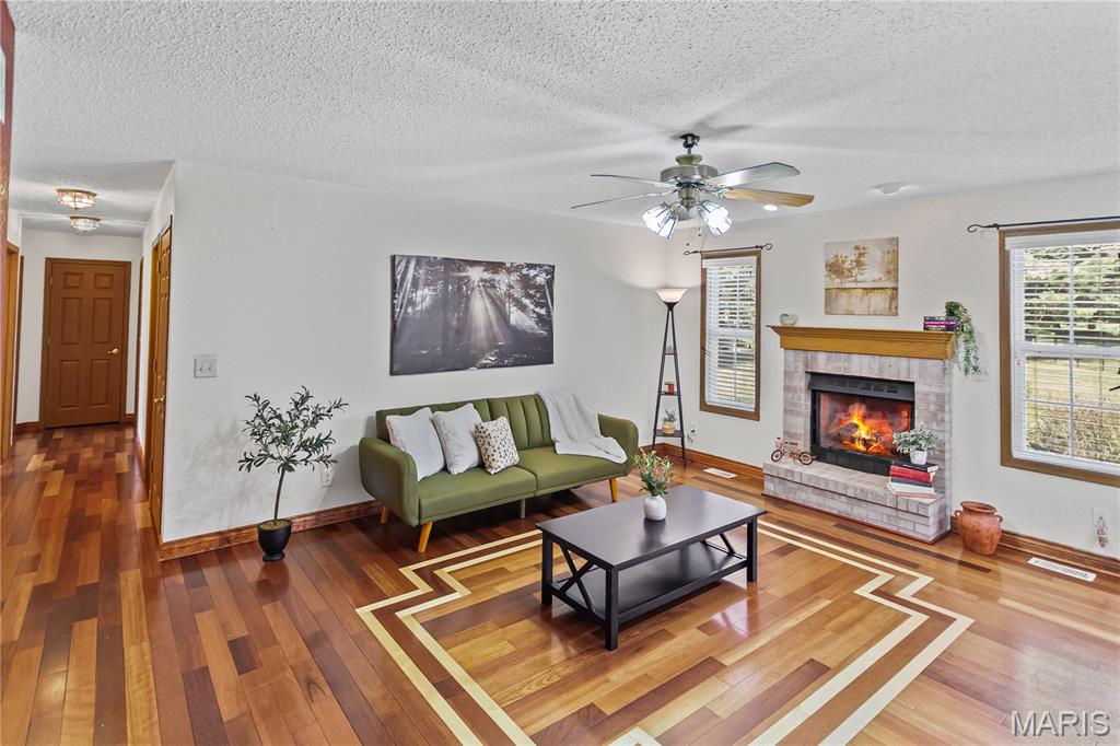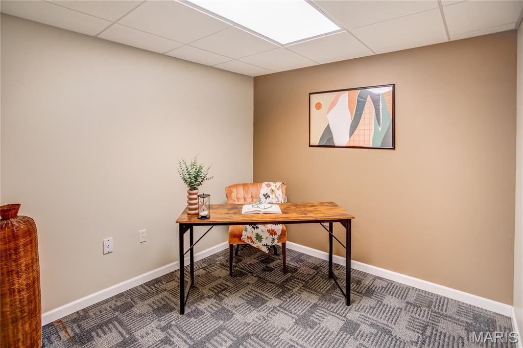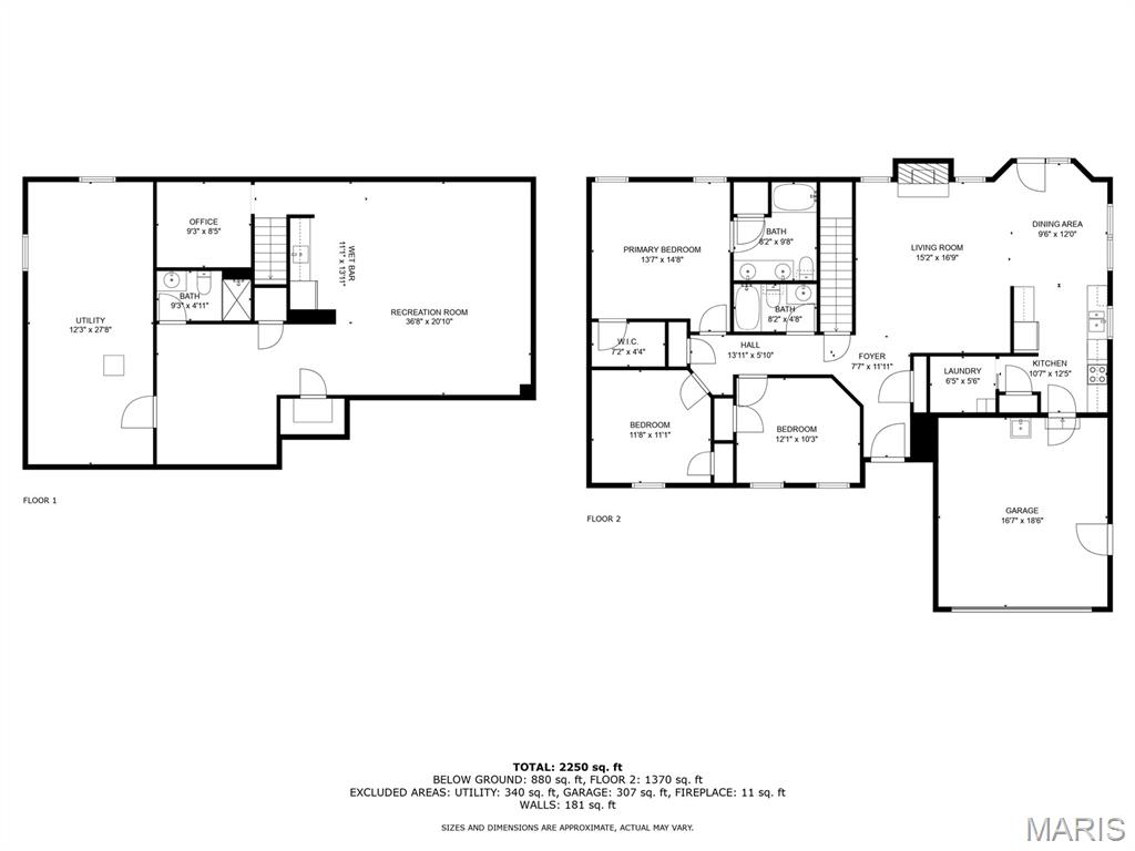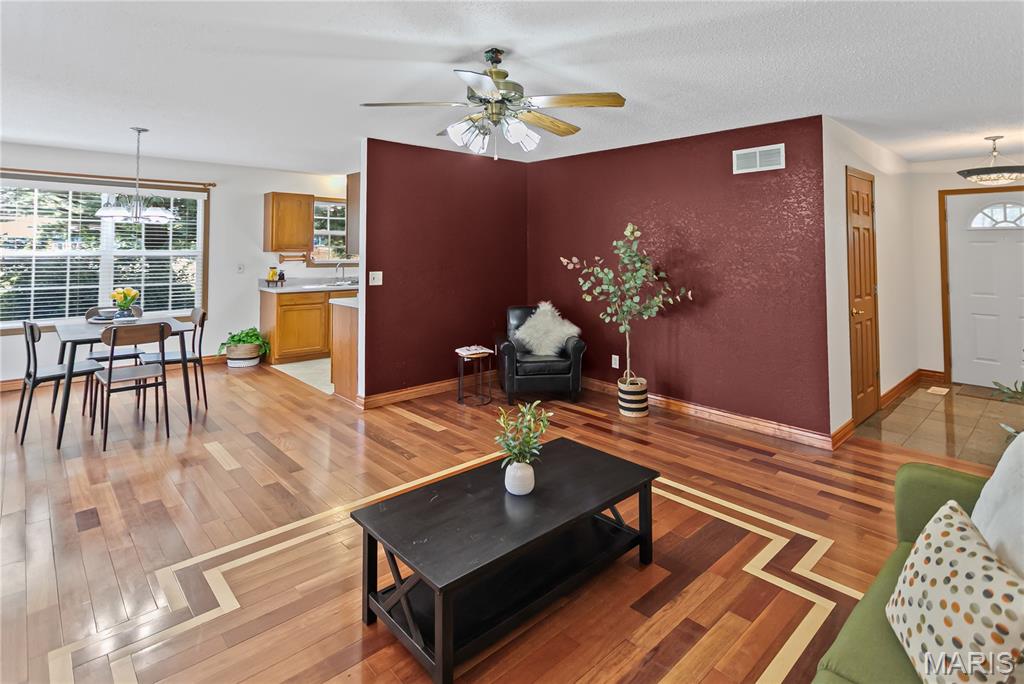 Welcome to this beautifully maintained home featuring 2 spacious bedrooms, including a master suite with a walk-in closet and a double vanity in master bathroom. The living room offers vaulted ceilings and a cozy gas fireplace, while the gorgeous hardwood flows throughout some of the main living area. The kitchen is equipped with a pantry and all appliances stay. The main floor also includes a convenient laundry room with lots of storage. The lower level boasts a kitchenette with a sink and refrigerator, a remodeled bathroom with shower, and a separate office space-ideal for working from home. Also, has fiber internet available. Additional features include a full hallway bathroom on main level. Step outside to a large backyard with a generous concrete patio, perfect for entertaining, along with a covered front porch as well. The oversized 2 car garage includes a slop sink and the roof is 3 +/- years old. From cozy mornings by the fireplace to evenings on the patio, this home is ready to hold your next chapter.