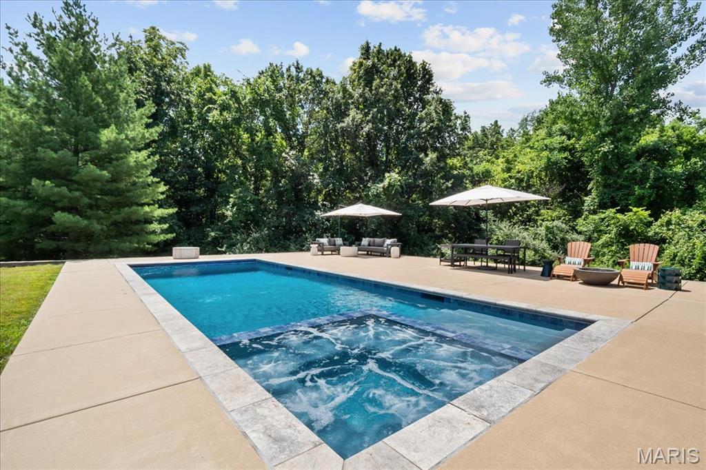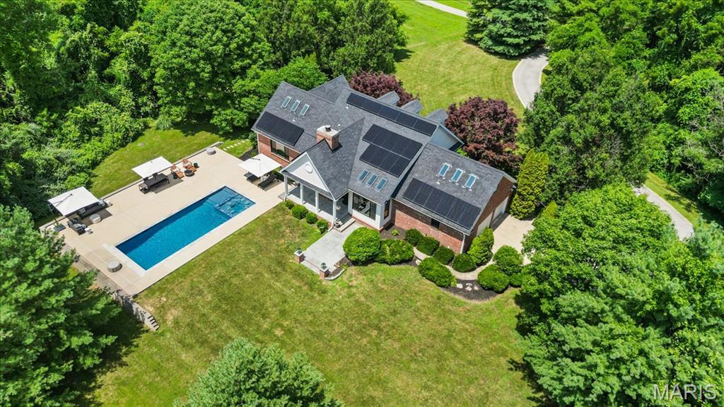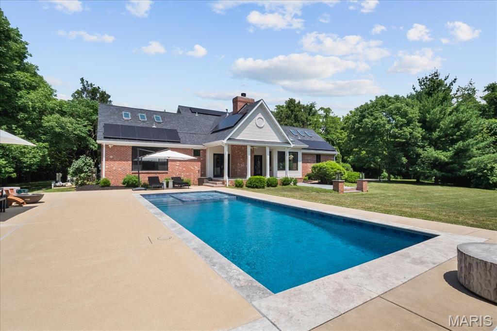 Nestled on 2 beautifully landscaped acres, this 5-bedroom, 4-bathroom home backs up to 50 acres of wooded land, offering the peace and seclusion of nature just minutes from downtown Edwardsville. As a bonus, this property comes with lake access to Holiday Shores Lake, perfect for boating, fishing, and enjoying lake life. Spend your summer days lounging by the in-ground pool and spa, or unwind under the stars in the serene, tree-lined backyard. The thoughtfully updated interior features modern upgrades throughout, including skylights that flood the home with natural light, solar panels for energy efficiency, and a 2-car garage with electric vehicle charging stations. Inside, a spacious and flexible layout caters perfectly to families or those who love to entertain. With five generously sized bedrooms and four full bathrooms, there’s plenty of room for everyone. The updated kitchen and baths blend timeless style with today’s must-have features. Whether you’re savoring quiet mornings on the back patio, hosting poolside gatherings, or exploring nearby parks and shops, this home offers a rare combination of rural tranquility and city convenience. Ask your agent for a full list of upgrades and updates. Back on market due to no fault of the seller.