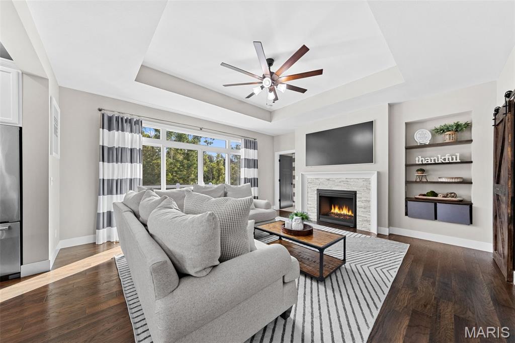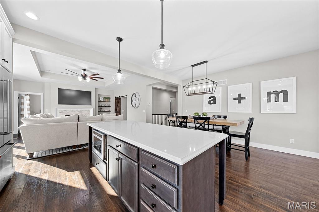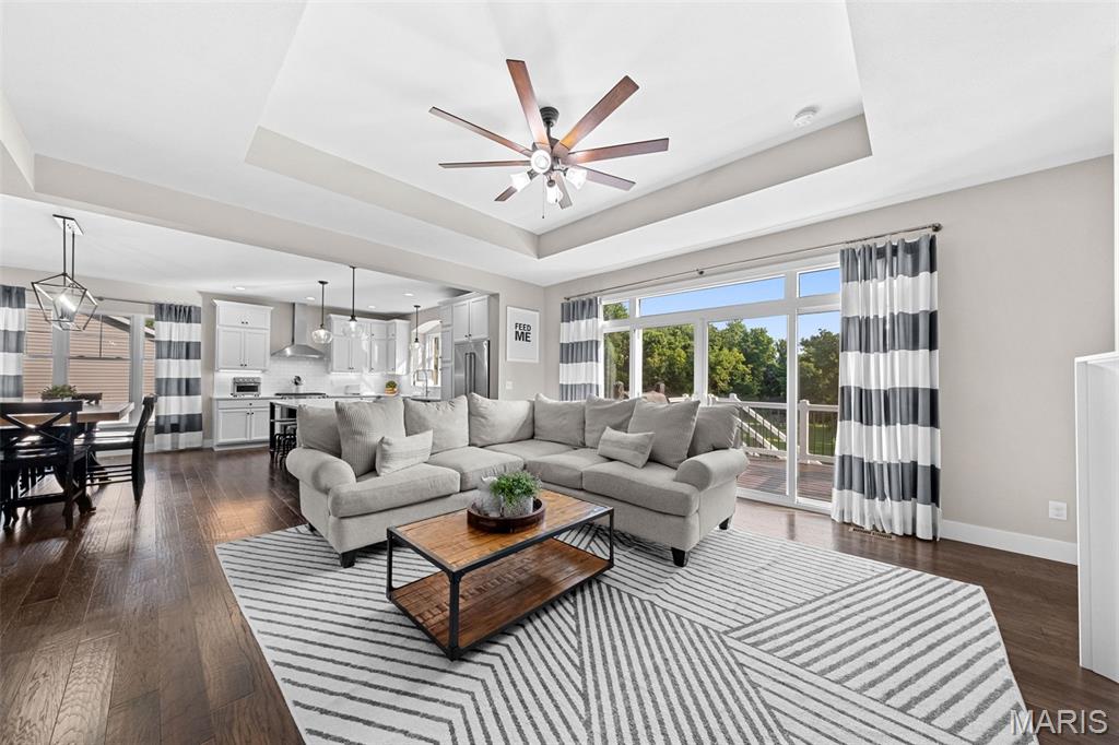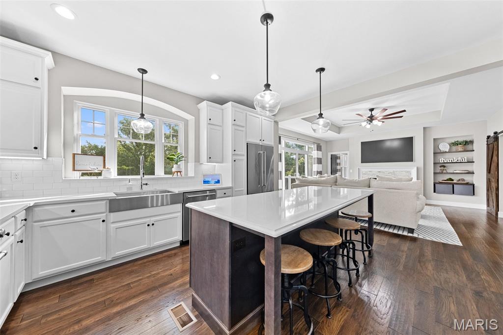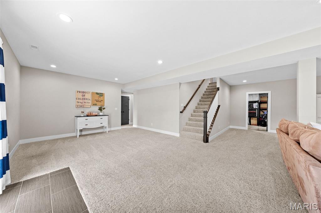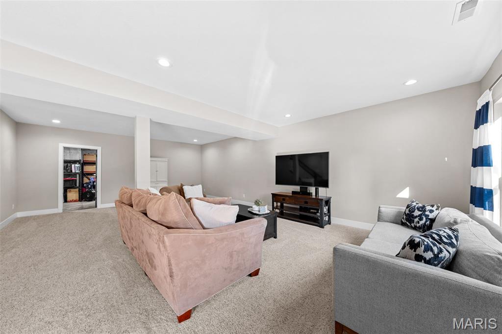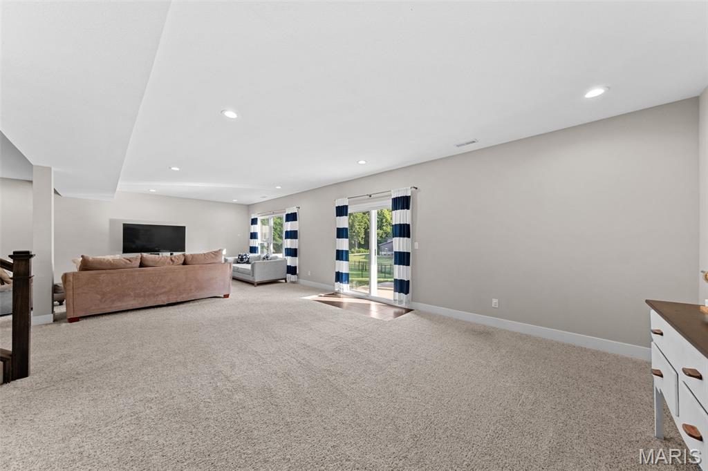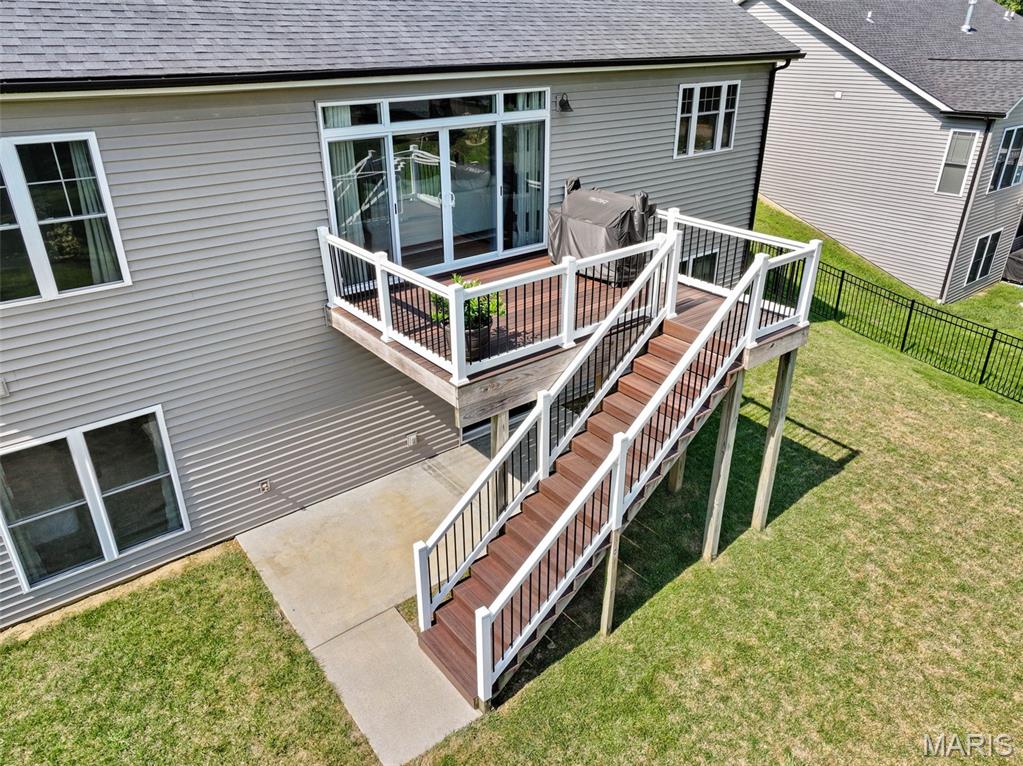 Welcome home to 2343 Lakeshore Drive in the highly sought-after Fox Run Estates subdivision in Columbia, IL! This impeccably maintained 4-bedroom, 3-bathroom home is located in the award-winning Columbia School District and offers a desirable split-bedroom floor plan with an open layout designed for comfortable living and entertaining. The kitchen is a standout with quartz countertops, spacious center island, subway tile backsplash, stainless steel appliances (included), and an adjoining dining area. The spacious living room features built-in shelving, a cozy gas fireplace, and access to a composite deck that overlooks a beautiful, tree-lined backyard. The primary suite includes a large walk-in closet and a luxurious en-suite bathroom with a soaking tub, oversized shower, and double bowl vanity. The walkout lower level provides additional living space with a generous family room, play or gaming area, a fourth bedroom, and a third full bathroom—plus plenty of unfinished storage space. An attached 2-car garage adds convenience. Located just minutes from schools, shopping, dining, and I-255 for easy access to St. Louis, this home combines location, condition, and space—everything today’s buyer is looking for!