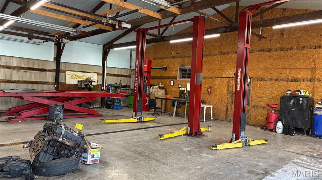 Equipped Automotive Repair Site. Great location on State St. (IL Hwy 150) with high traffic count. Randolph County, IL in Chester on 0.70 +/- acres. Equipped metal building (3,240 sq ft) with 5 Overhead doors, 3 Lifts, Tire changer, Wheel alignment machine, 220 Outlets, Oil waste burning heater, center floor drain, and many other items. The block building (1,950 sq ft) has full concrete flooring and can be used for servicing or storage. It includes a bathroom, natural gas and plenty of storage. Office building (546 sq ft) up front great for office or storage.