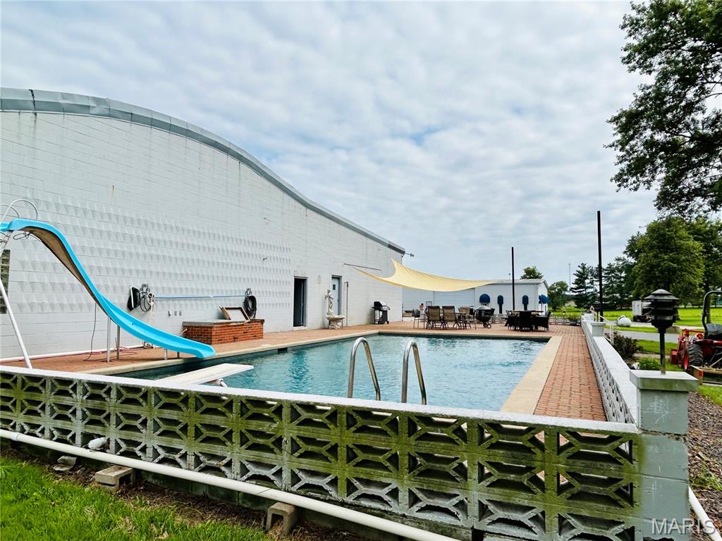 Incredible Opportunity on 4.48 Acres! This well-cared-for, one-owner 3-bedroom, 3-bath home offers the perfect blend of comfortable living and exceptional amenities. Inside, you’ll find a large eat-in kitchen perfect for hosting or entertaining, a spacious living room with a beautiful view of the pool and mature lot and three bedrooms on the main level with one full bath, plus a converted fourth bedroom now serving as a convenient laundry room. The kitchen offers modern style and functionality, while the finished basement provides endless possibilities with a large entertaining area, bar room and space for potential additional bedrooms. Outside, enjoy your private retreat with an inground pool, expansive 60×84 shed with overhang and large exterior storage area — perfect for boats, campers or hobby equipment. The shed also features a pool house area with its own half bath and a large storage section in addition to a smaller area that includes a sliding door—ideal for equipment or can easily be converted back for farm animals. A small portion of the property is currently farmed, adding to its versatility. Whether you’re seeking space for work, play or storage, this property delivers! Adjoining 10 acre commercial parcel with 75×75 warehouse/office is available as well.