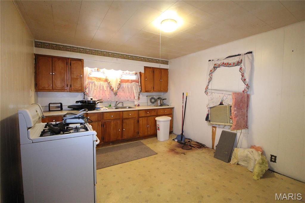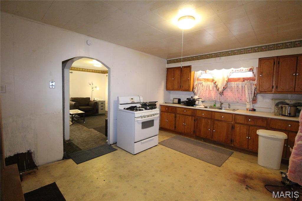 Plenty of potential in this 5 bed/2 bath home. Inside you will find the living room, large eat-in kitchen, generously sized bedrooms, and 2 full baths. Off the kitchen is access to the laundry area which leads to the exterior door for the carport or you can head down to the full unfinished basement with plenty of storage space. Sitting on a .33 lot with a shed for additional storage. Property is being sold AS IS, sellers to offer no clean out, warranties, repairs, or inspections, including occupancy. Price adjustment due to flat roof over 2 bedrooms.