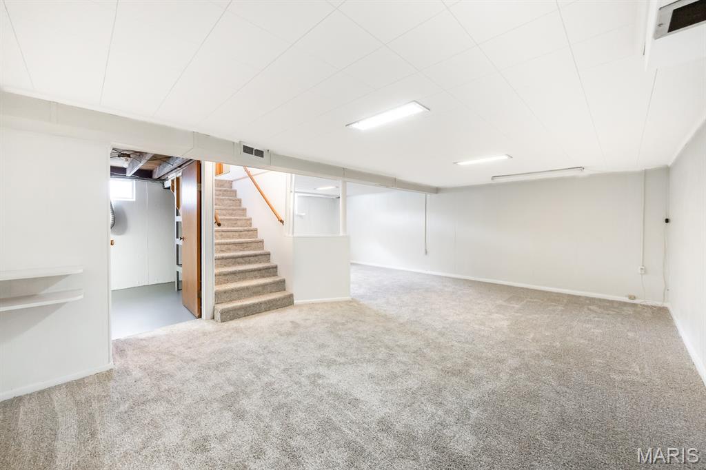 Downstairs, a full basement partially finished with new carpet, makes for ample storage and a nice recreation area. Enjoy peace of mind with solid brick construction, a shingle roof, and updated HVAC system (2023).
