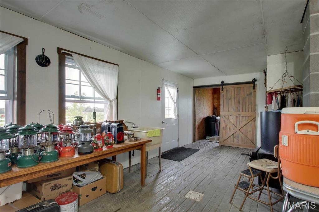 Homesteader’s dream meets horse property on this 28-acre Amish homestead in Revere, Missouri. A mix of tillable ground and pasture, a large garden, and a scenic pond make this property ideal for self-sufficient living or a small-scale farm. The expansive home offers over 4,700 finished sq ft with 6 bedrooms, 2 kitchen areas, oversized living and dining spaces, main-floor laundry, and a massive unfinished basement plus upper-level storage. The home is off-grid with no electric or gas service but has running water, a septic system, and electric available at the road. It’s heated with a wood stove and features vinyl siding, a shingled roof, and double-pane replacement windows. Outbuildings include a 32’x52’ insulated and finished workshop, a 48’x64’ horse barn with stalls and a tack room, a 48’x90’ utility barn, and several smaller buildings—perfect for livestock, equipment, or expanding your operation. Whether you’re starting a homestead, raising horses, or simply looking for space to live freely, this versatile property offers endless potential. Showings by appointment only.